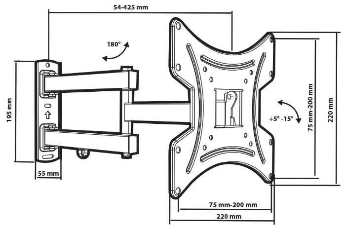 - Поворот влево-вправо, наклон вверх-вниз, выдвижение от стены до 42,5 см.