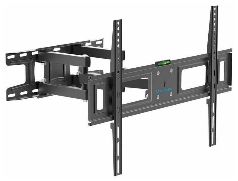 - Кронштейн выдерживает телевизоры диагональю 65 дюймов и весом до 27–30 кг, сохраняя жесткость даже при полном выдвижении от стены.
