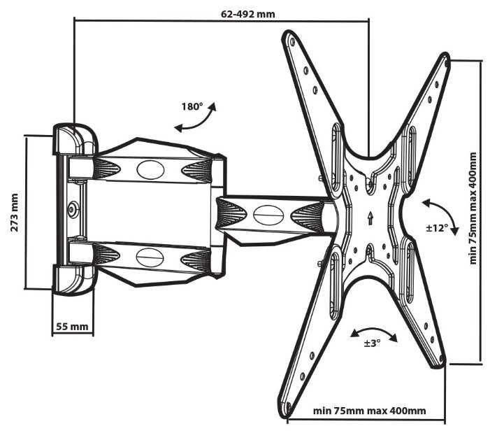 Мощный, с большим выносом. Для 55 дюймов брал для крепления в угол. Всё поместилось замечательно.