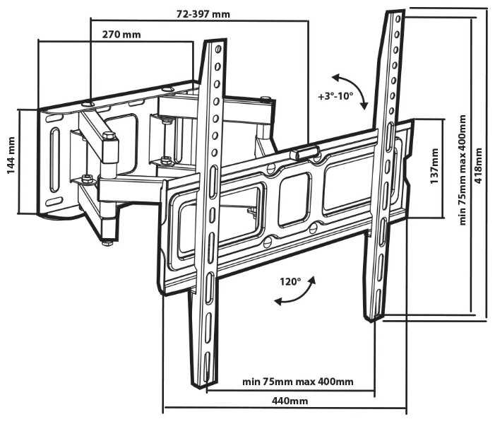 | Дополнительная информация : | Сверхмощная стальная конструкция, Многофункциональный - телевизор на кронштейне можно наклонить, повернуть и сдвинуть к стене, Простой и легкий монтаж, Усиленное настенное основание, Водяной уровень |