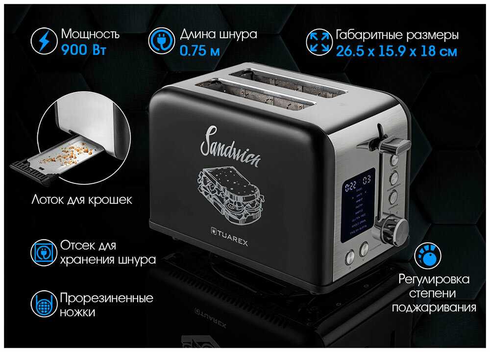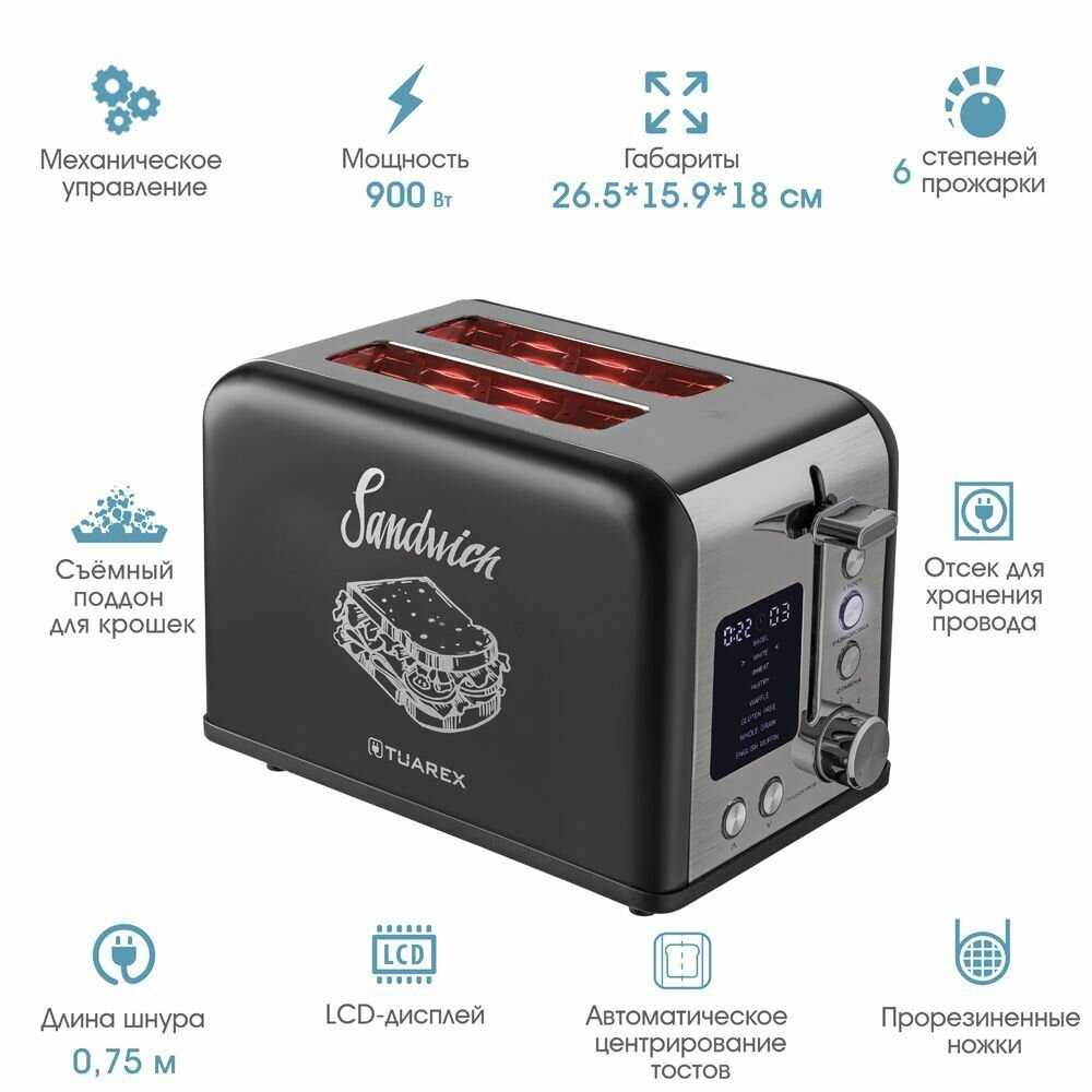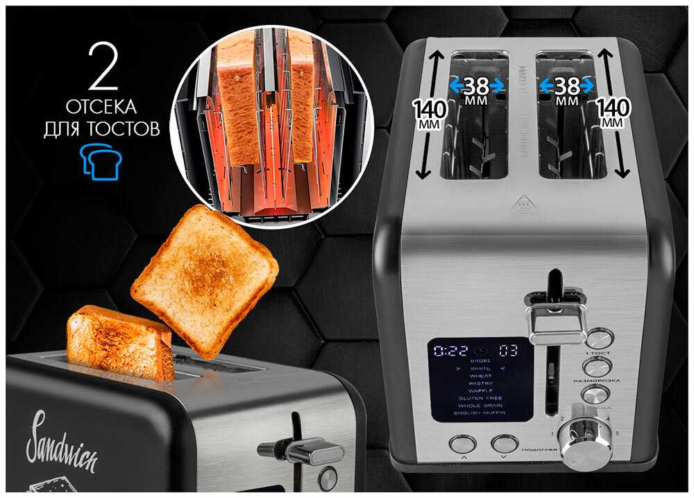 - + Стильный тостер с лед дисплеем и подробной инструкцией на русском языке