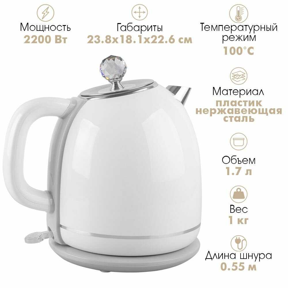 | Особенности : | вращение на 360 градусов, двойные стенки, дисплей, индикатор уровня воды, индикация включения, отсек для хранения шнура, сенсорное управление, съемная крышка, фильтр |