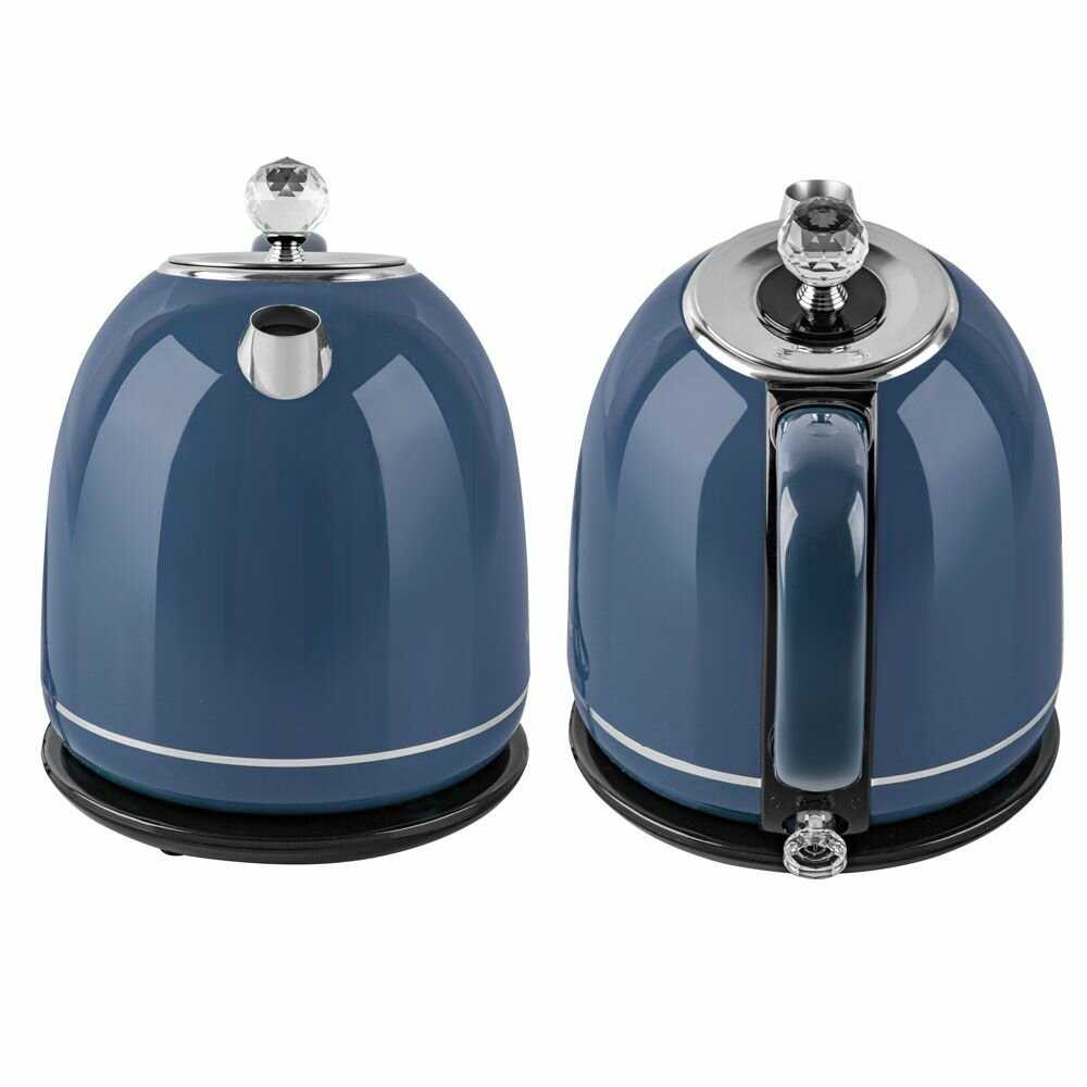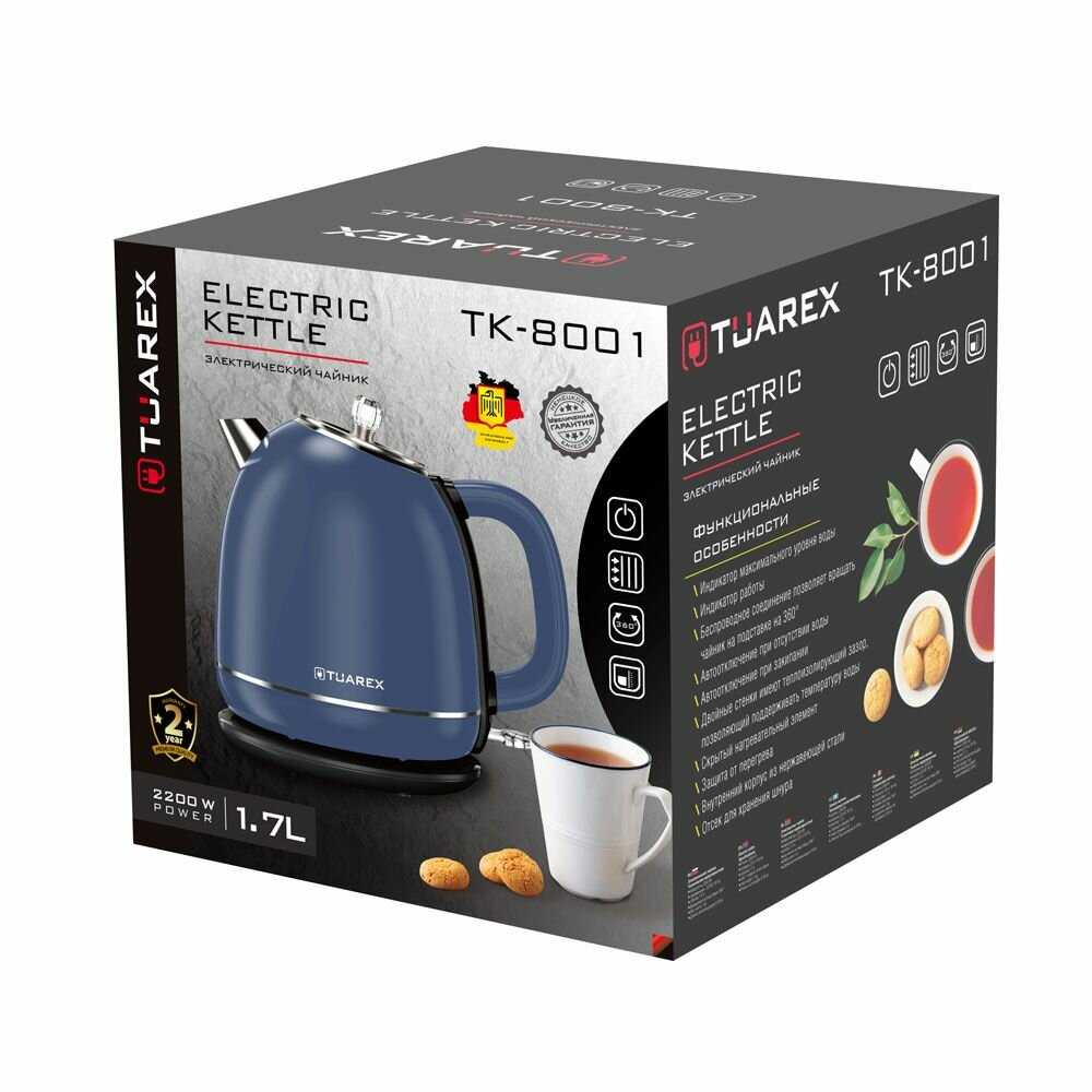 - Мощность 1500–2200 Вт обеспечивает нагрев 1.2 л за 3–5 минут.