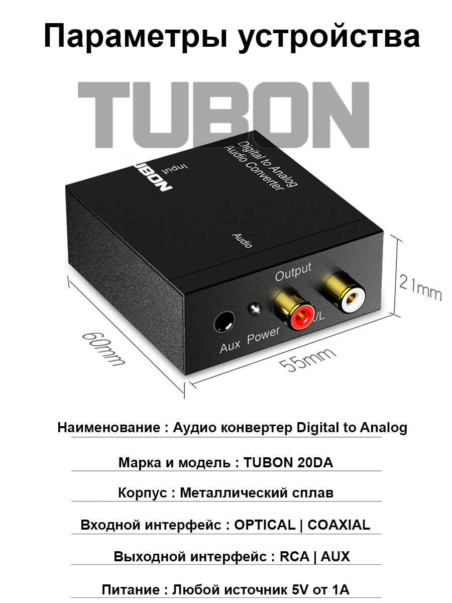 Лучшие цены сегодня на TUBON ЦАП [Optical / TosLink / Coaxial - RCA, AUX]