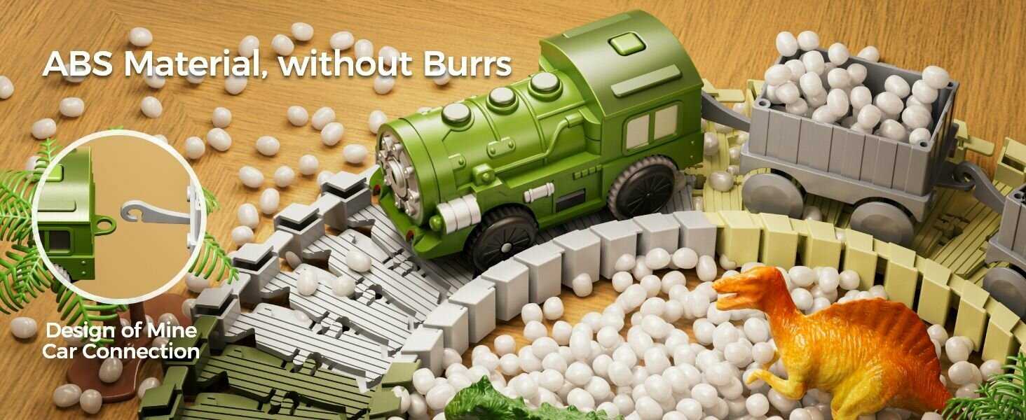 - + За счет гибкой железной дороги, изделие довольно долговечно. Ребенок пытался сломать, не получилось.