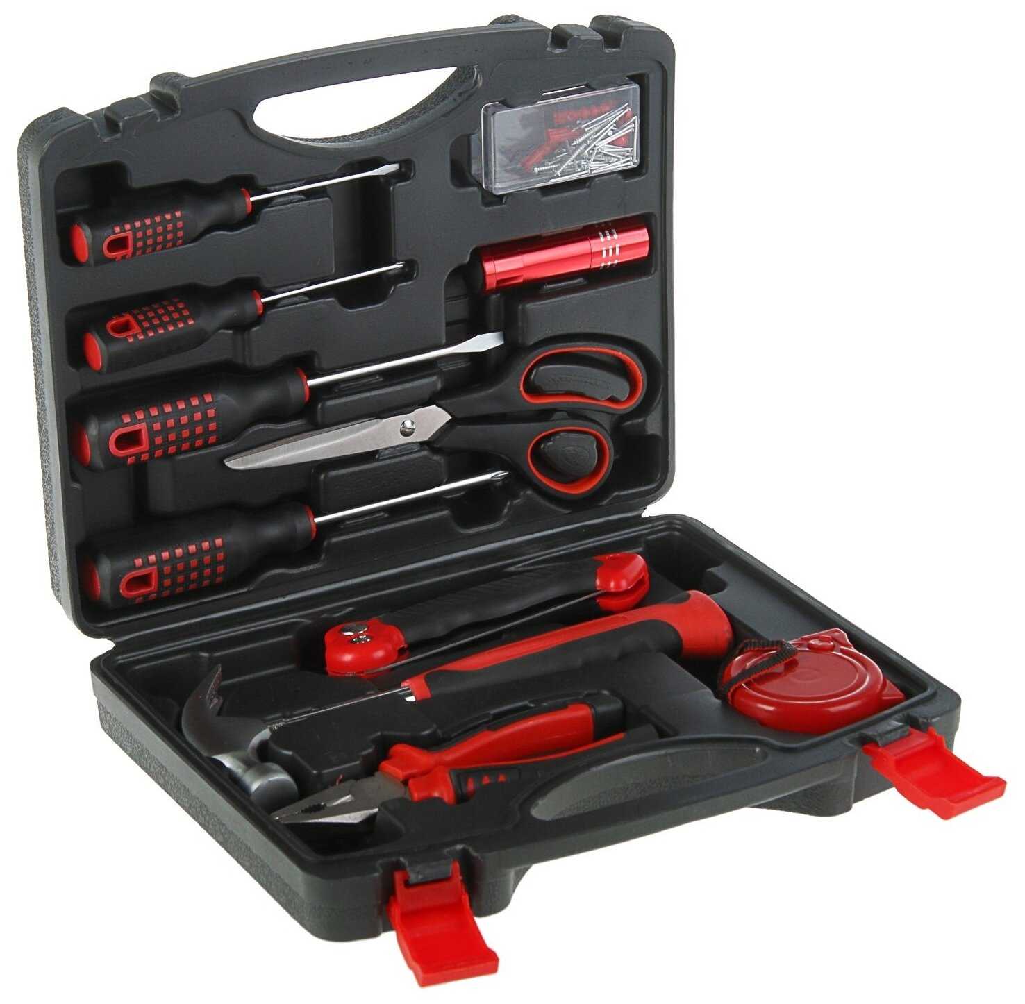 Инструменты в комплекте : | молоток, ножовка по дереву, отвёртки, пассатижи, плоскогубцы |