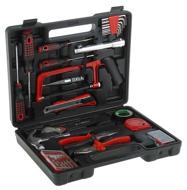 | Инструменты в комплекте : | длинногубцы, ключ разводной, ключи имбусовые (шестигранные), молоток, ножовка по металлу, отвёртки, отвёртки для точных работ, пассатижи, плоскогубцы |