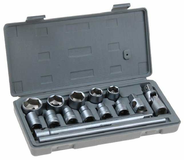 Головки торцевые подробно : | 1/2": 10 11 12 13 14 15 17 19 22 24 27 мм, карданный шарнир 1/2", вороток 1/2", удлинитель 1/2": 225 мм |