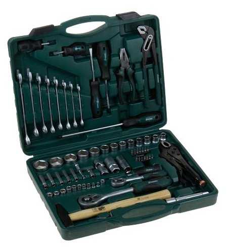 | Инструменты в комплекте : | вороток для головок, клещи, клещи переставные, ключи гаечные, ключи имбусовые (шестигранные), молоток, отвёртки, отвёртки для точных работ, плоскогубцы, трещотка |