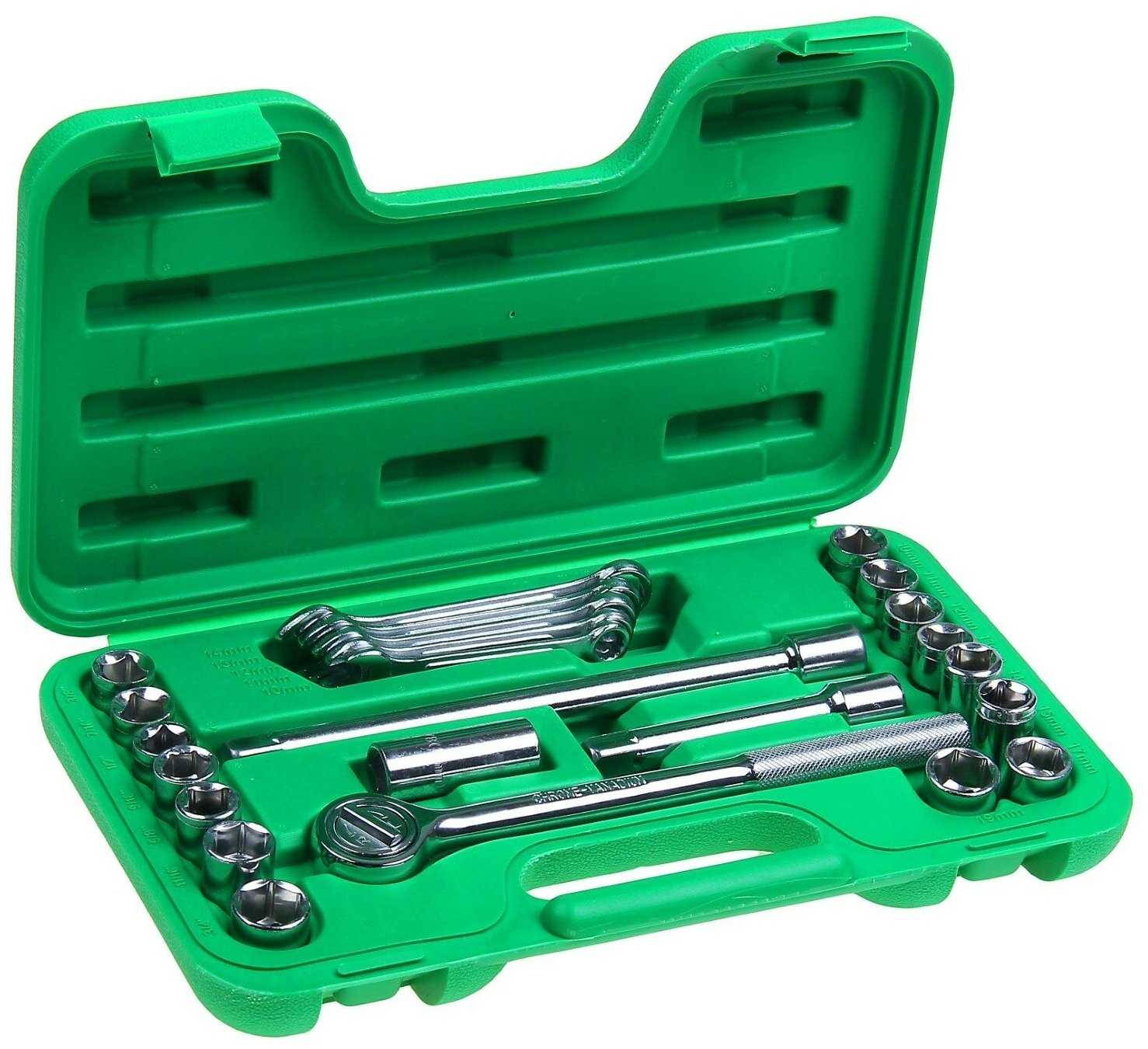 Инструменты в комплекте : | вороток для головок, ключи гаечные, трещотка |