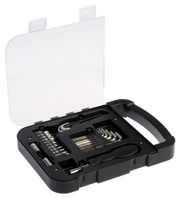 Аксессуары в комплекте : | бита-адаптер для торцевых головок, головка-держатель для бит, держатель для бит, нож |