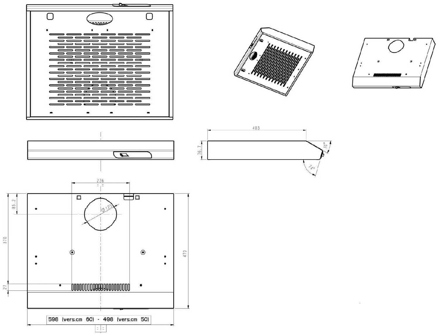 - Монтажные отверстия в корпусе позволяют надежно закрепить вытяжку, минимизируя риск смещения во время работы.