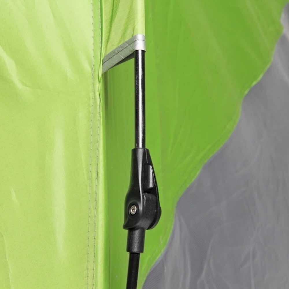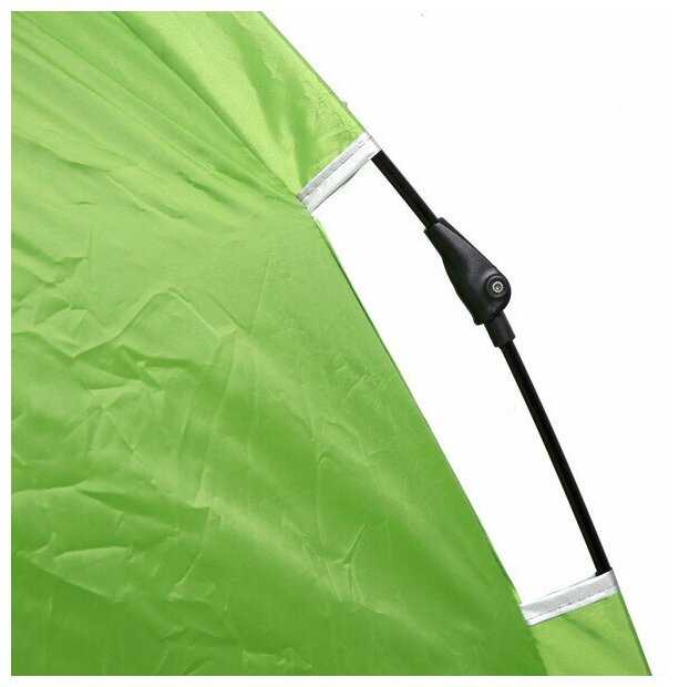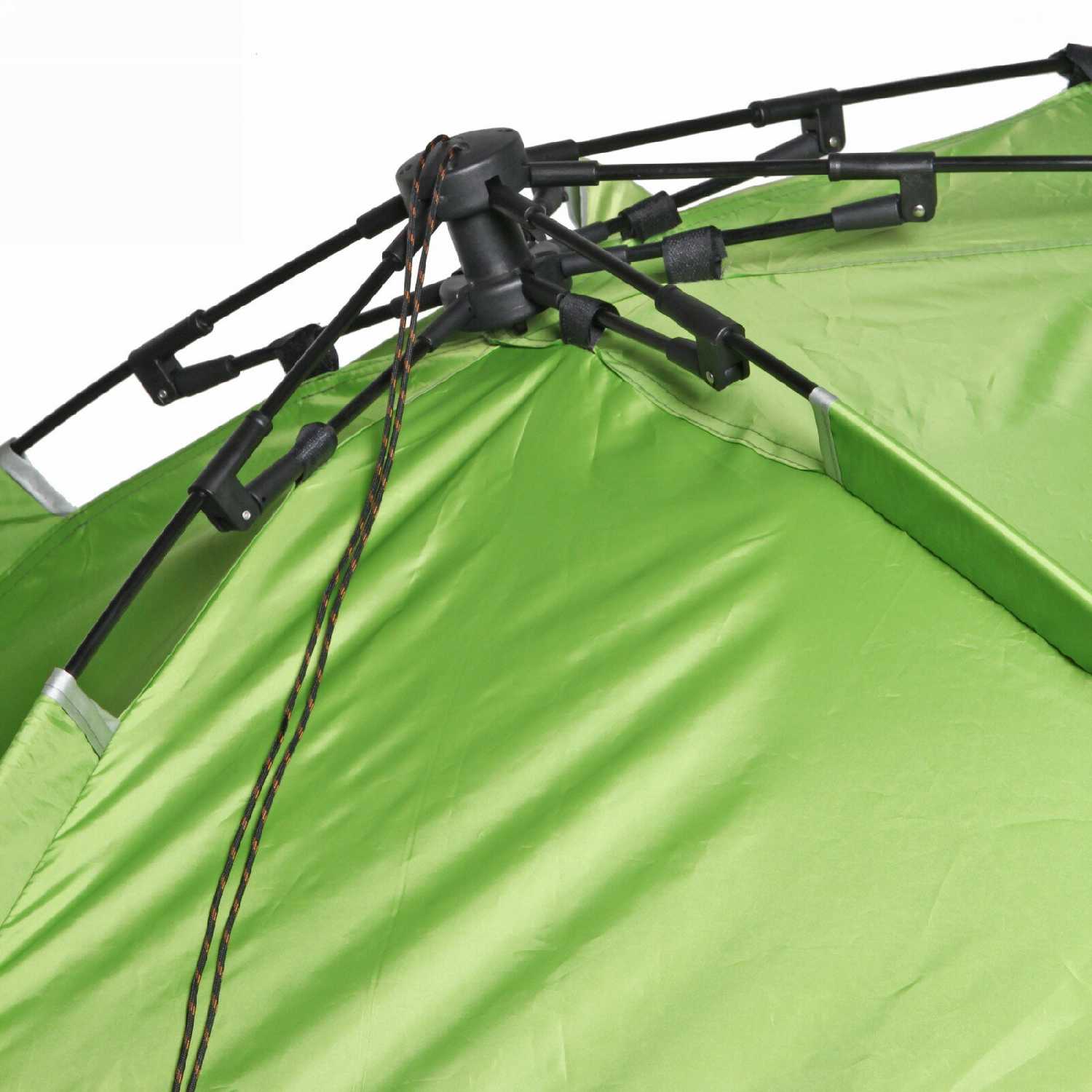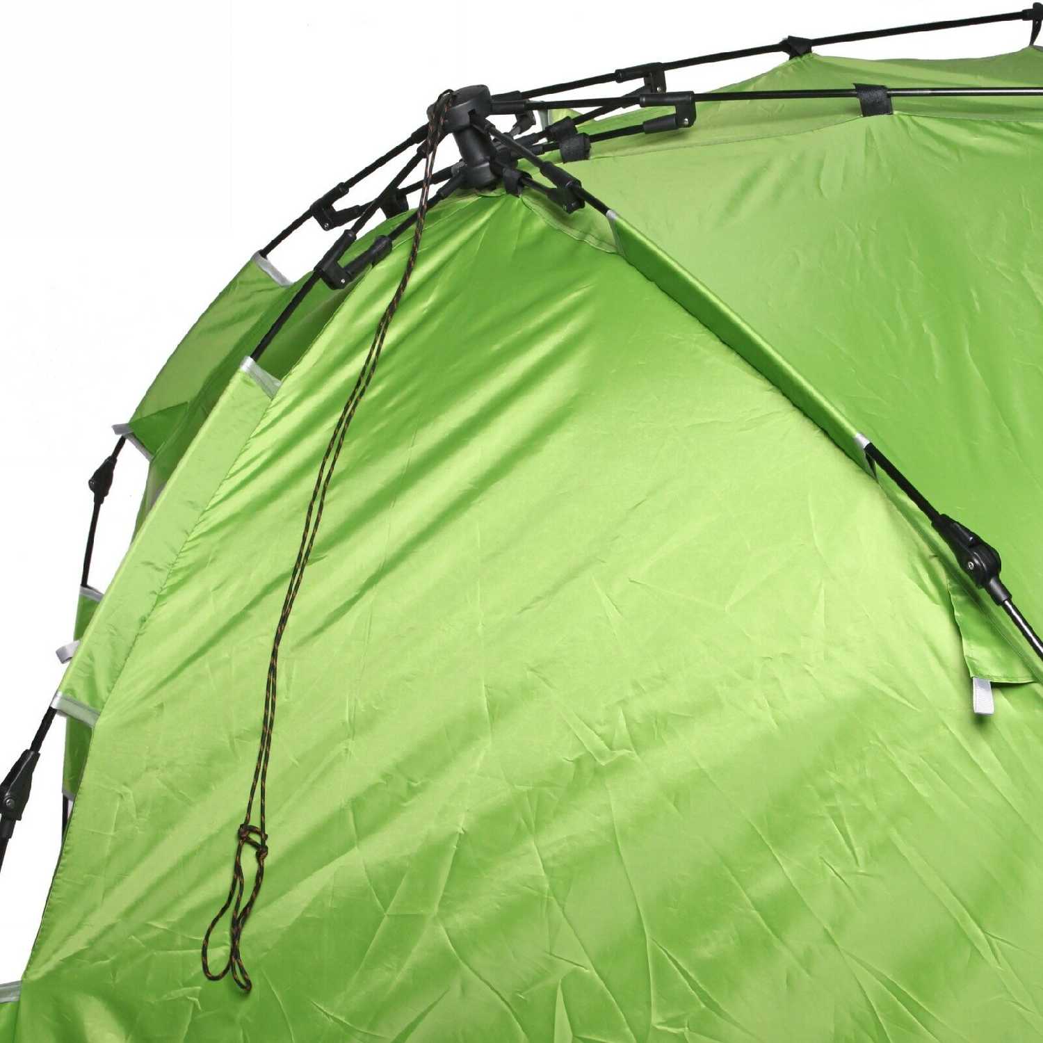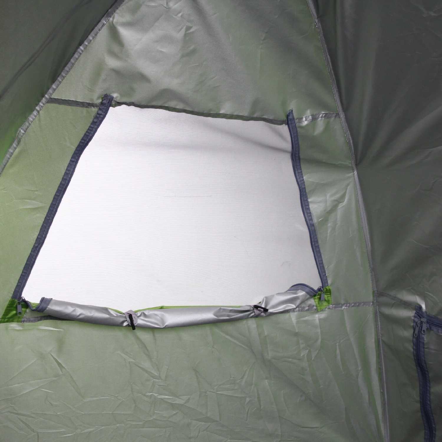 Дополнительная информация : | Палатка имеет прямоугольную форму и сложенную конструкцию, она зеленого цвета с серой подкладкой и черными молниями. |