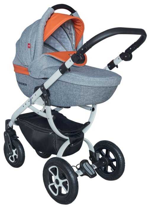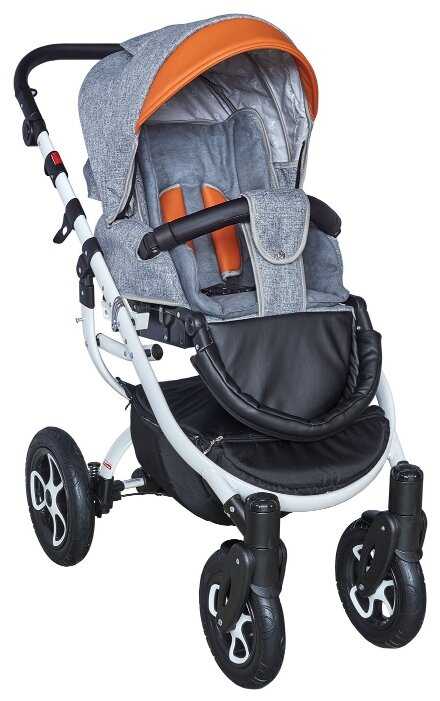 - + - Интересный дизайн - Отличное качество материалов верха - Колесная база отстегивается, складывается и компактно стоит в коридоре, что важно если вы не хотите в квартиру затаскивать - Люлька полностью пластмассовая (по сравнение с Камарело Севилья, где люлька наполовину тканевая), а это хорошая защита от непогоды.