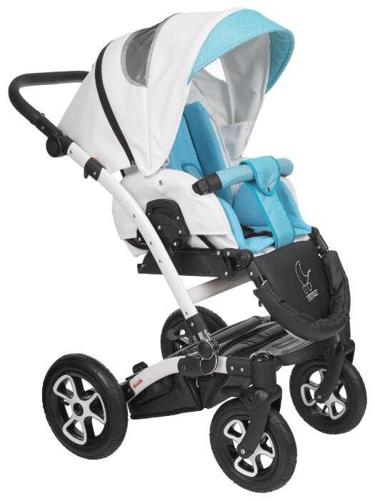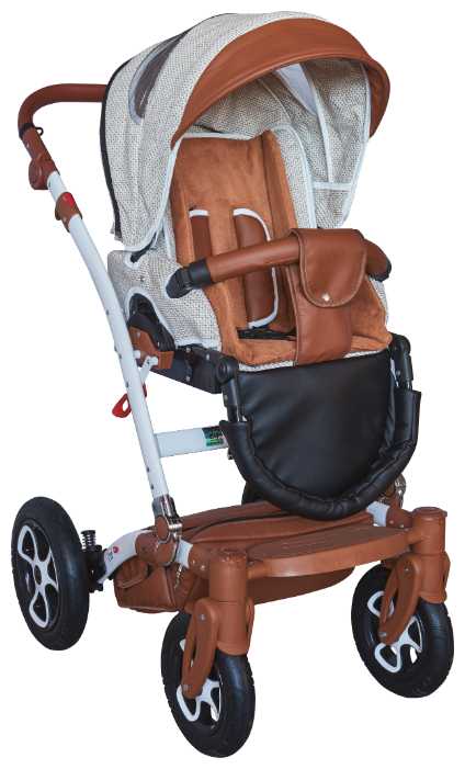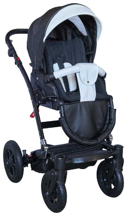 - + Отличное качество материалов, текстиль хороший и экокожа прочная и не маркая. Шасси легкое, устойчивое, и на больших надувных колесах, проходимость классная и неровности дороги амортизирует хорошо, дочку на плохой дороге просто покачивает, ей даже нравится)