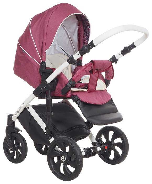 - - сумка для покупок держится спереди на липучках а сбоку и сзади на болтах, чтобы открутить их, нужно поднять коляску на уровне глаз и снять люльку, как вы понимаете, это вообще не удобно. проще её сразу снять, потому что на чёрном цвете видно всю пыль и грязь. как и любая коляска с поворотными колёсами, хороша только в города, где идеальные дороги и есть постоянная уборка тротуаров и чистят снег, в моем случае надо было брать классику. для новорожденных лучше брать с большей амортизацией и плавным ходом. хоть в этой модели амортизаторов аж 4 шт, толку нет не очень большой выбор расцветок
