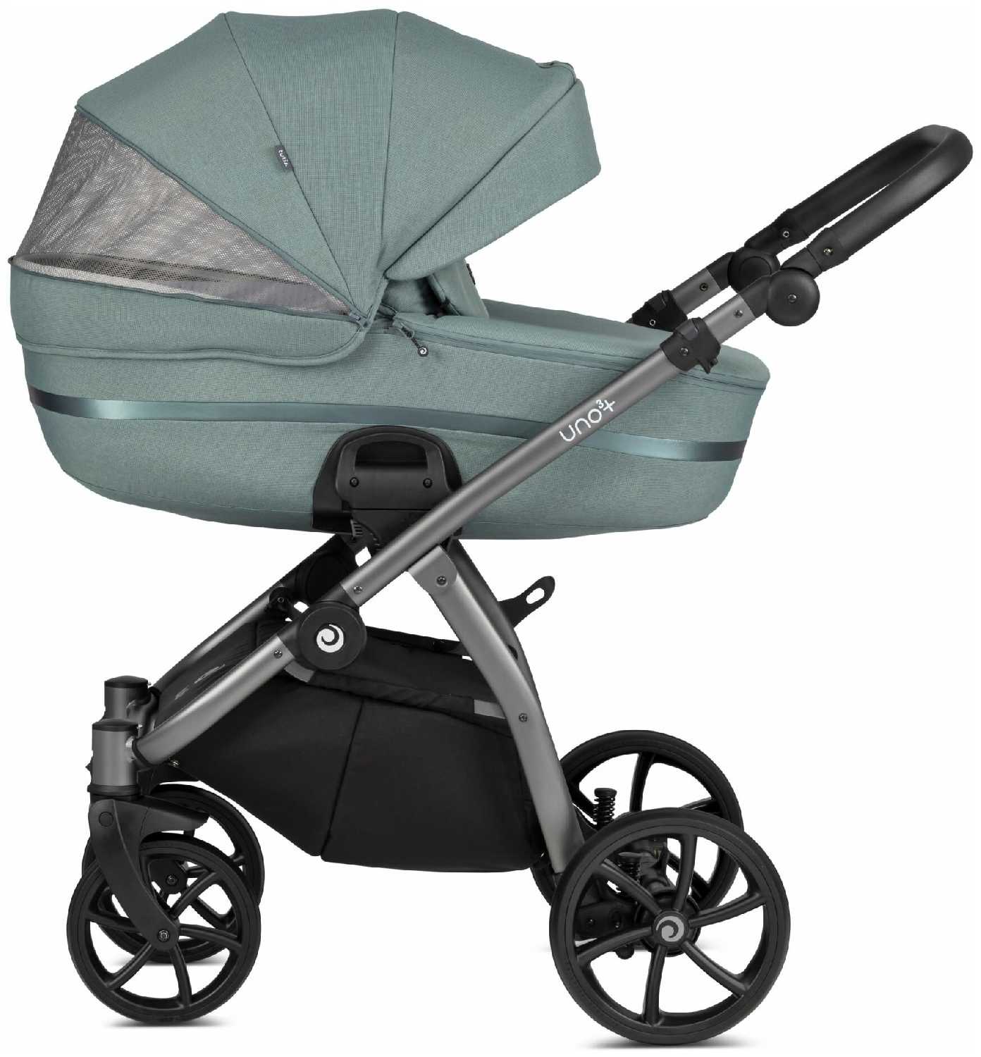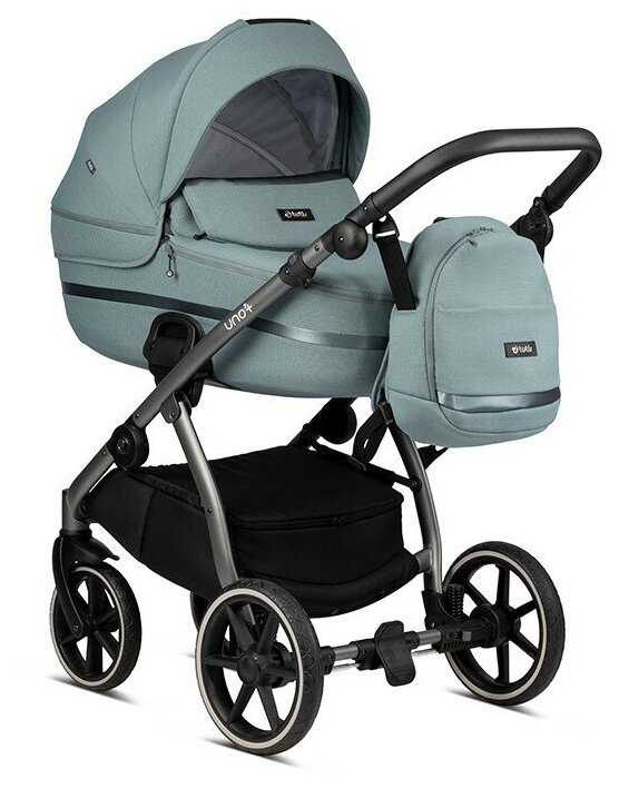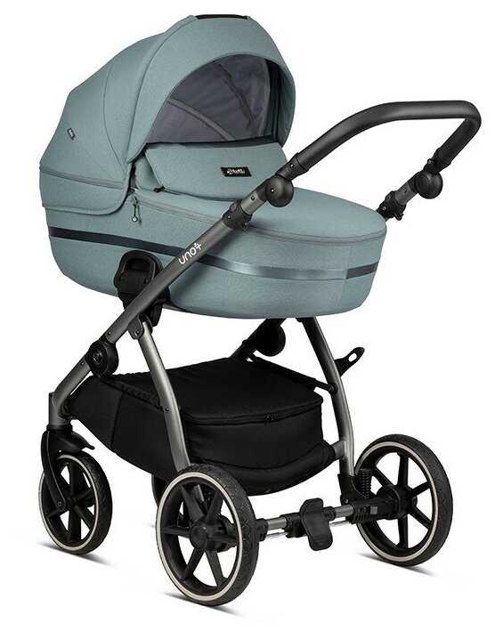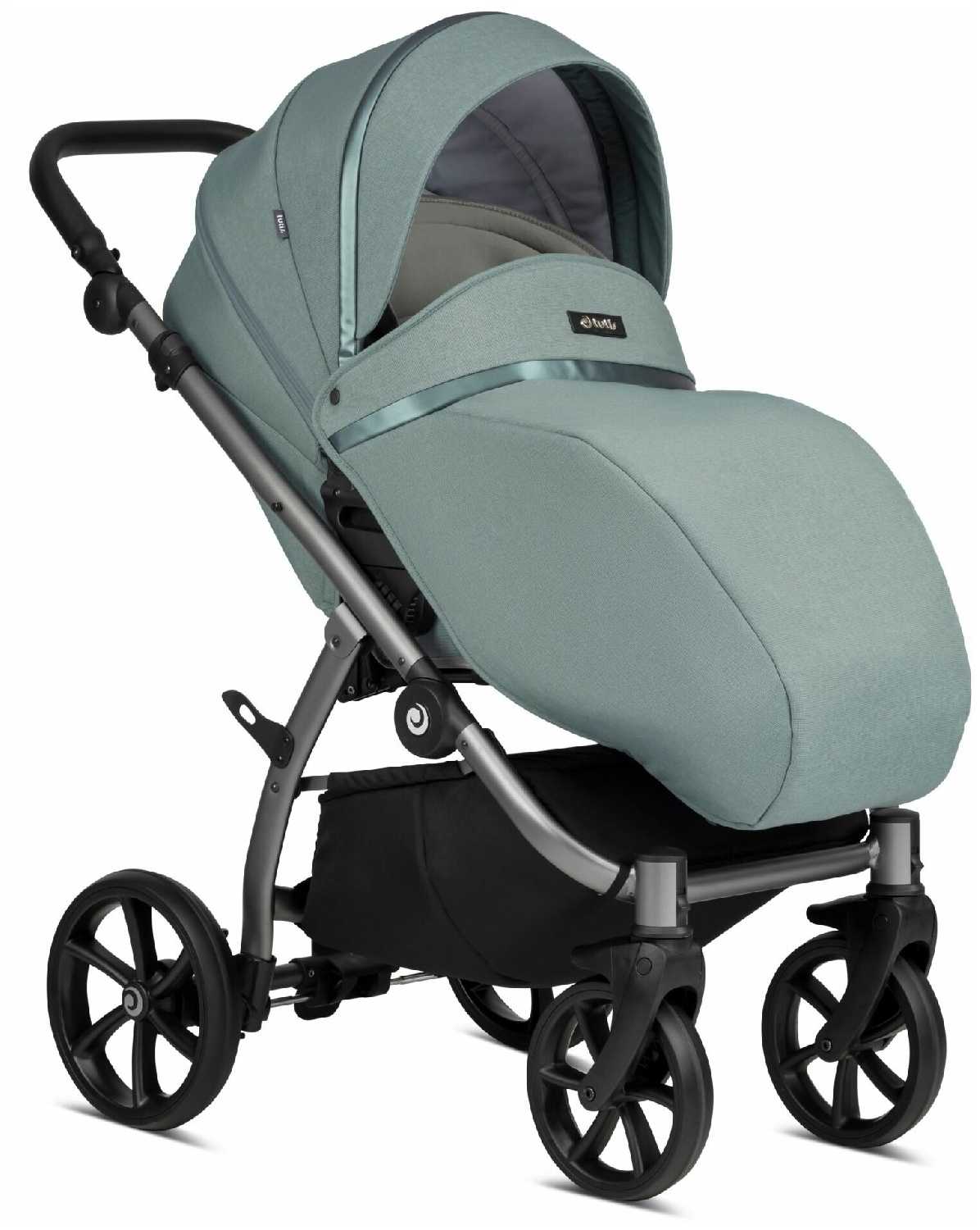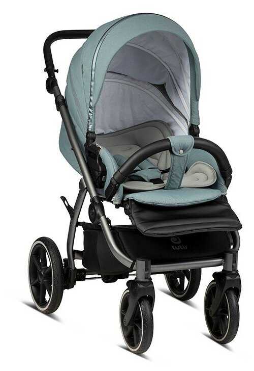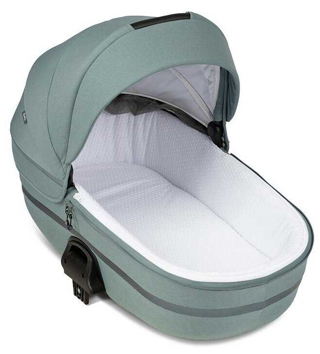 Шасси с колесами и корзиной для покупок, Люлька, Прогулочный блок со съемным бампером, Подстаканник, Рюкзак для мамы, Накидка для спального блока, Накидка на ножки, Матрасик для новорожденного, Дождевик, Встроенная сетка от насекомых.