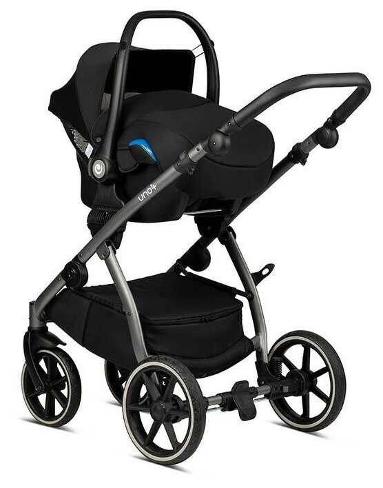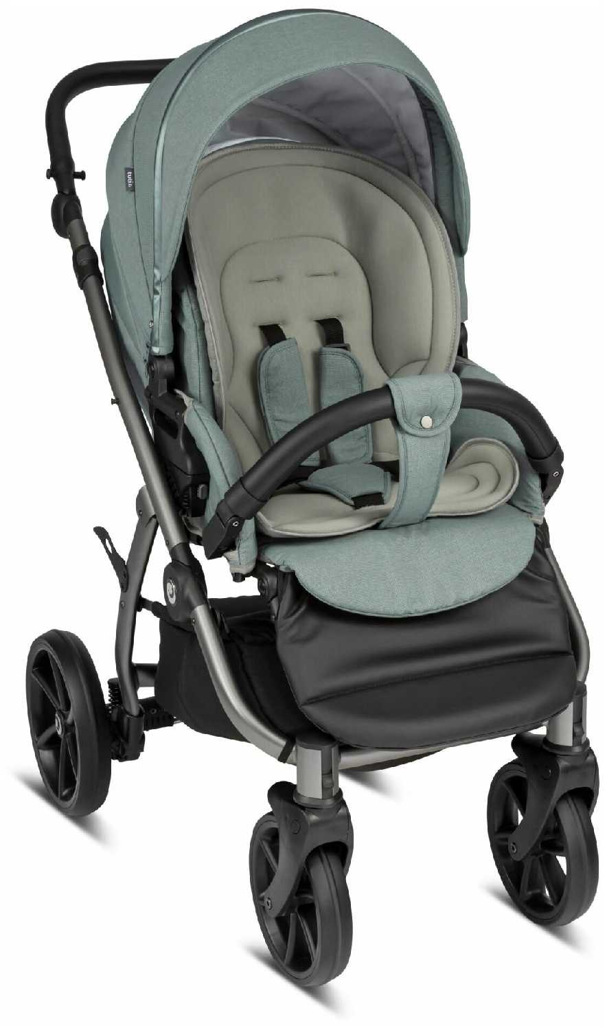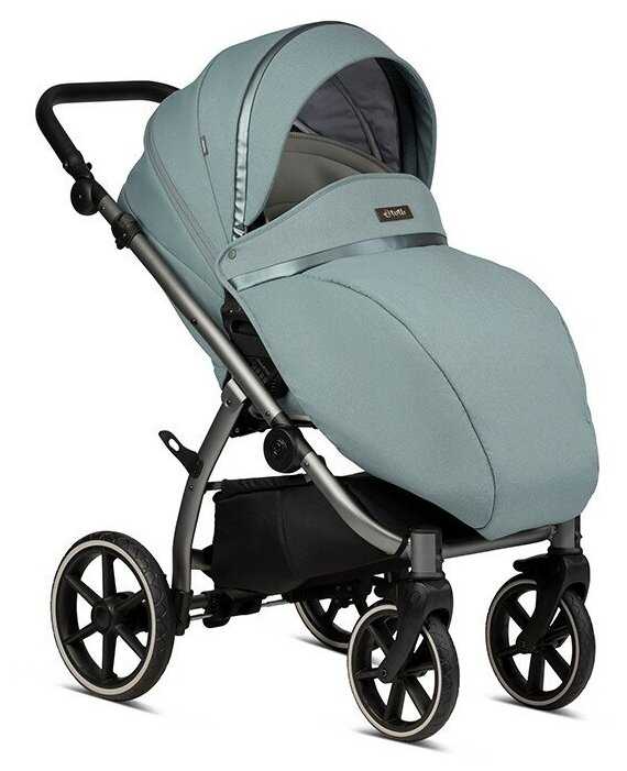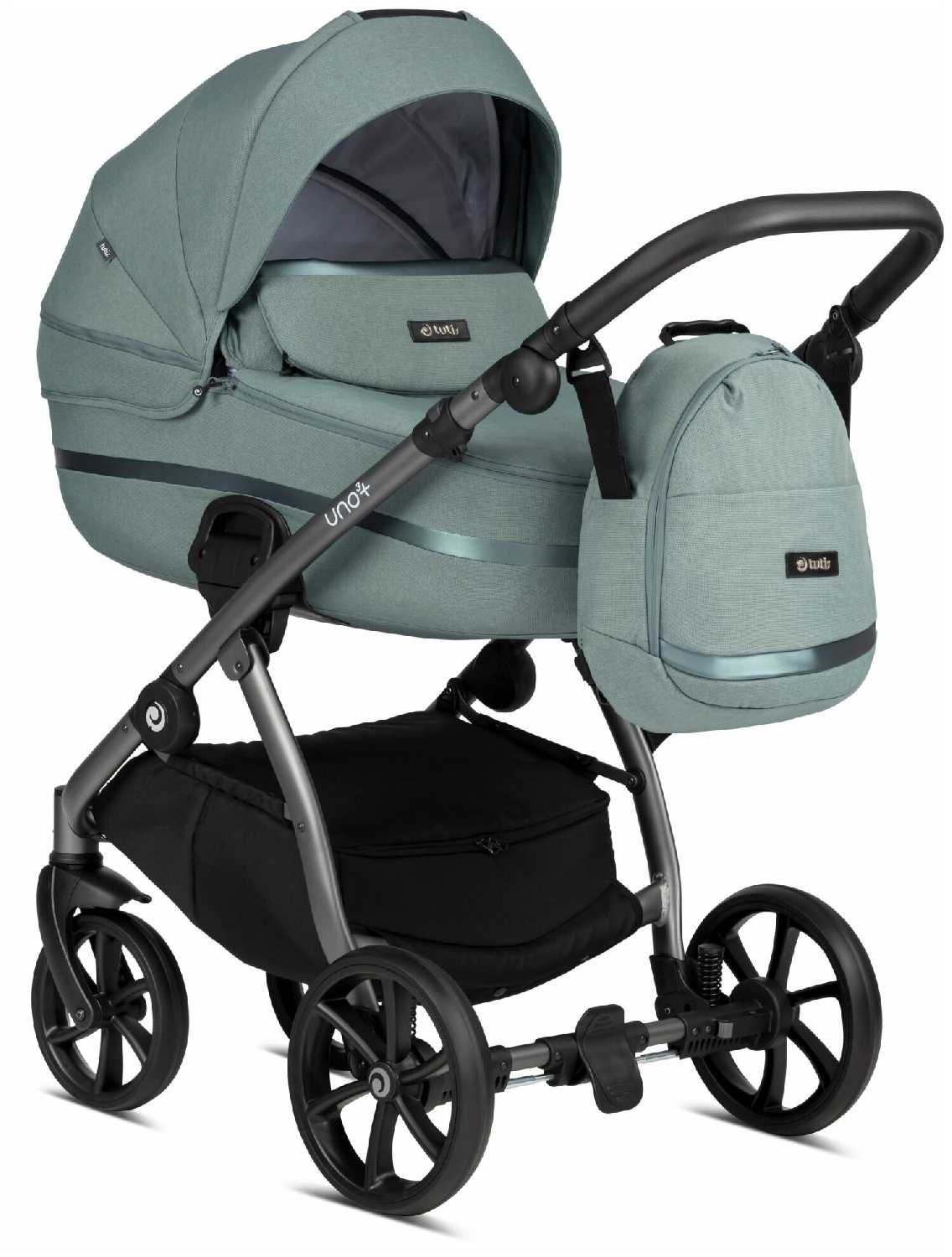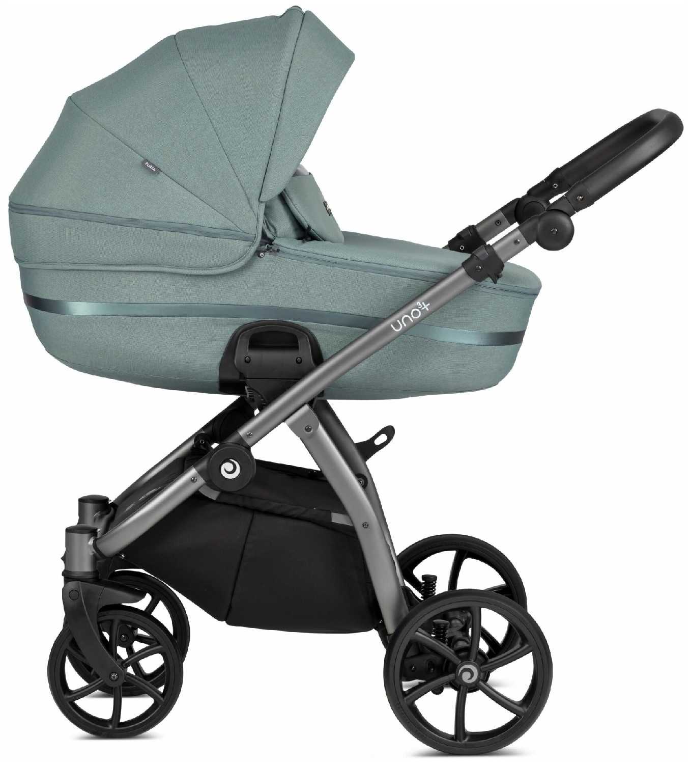 Шасси с колесами и корзиной для покупок, Люлька, Прогулочный блок со съемным бампером, Подстаканник, Рюкзак для мамы, Накидка для спального блока, Накидка на ножки, Матрасик для новорожденного, Дождевик, Встроенная сетка от насекомых.
