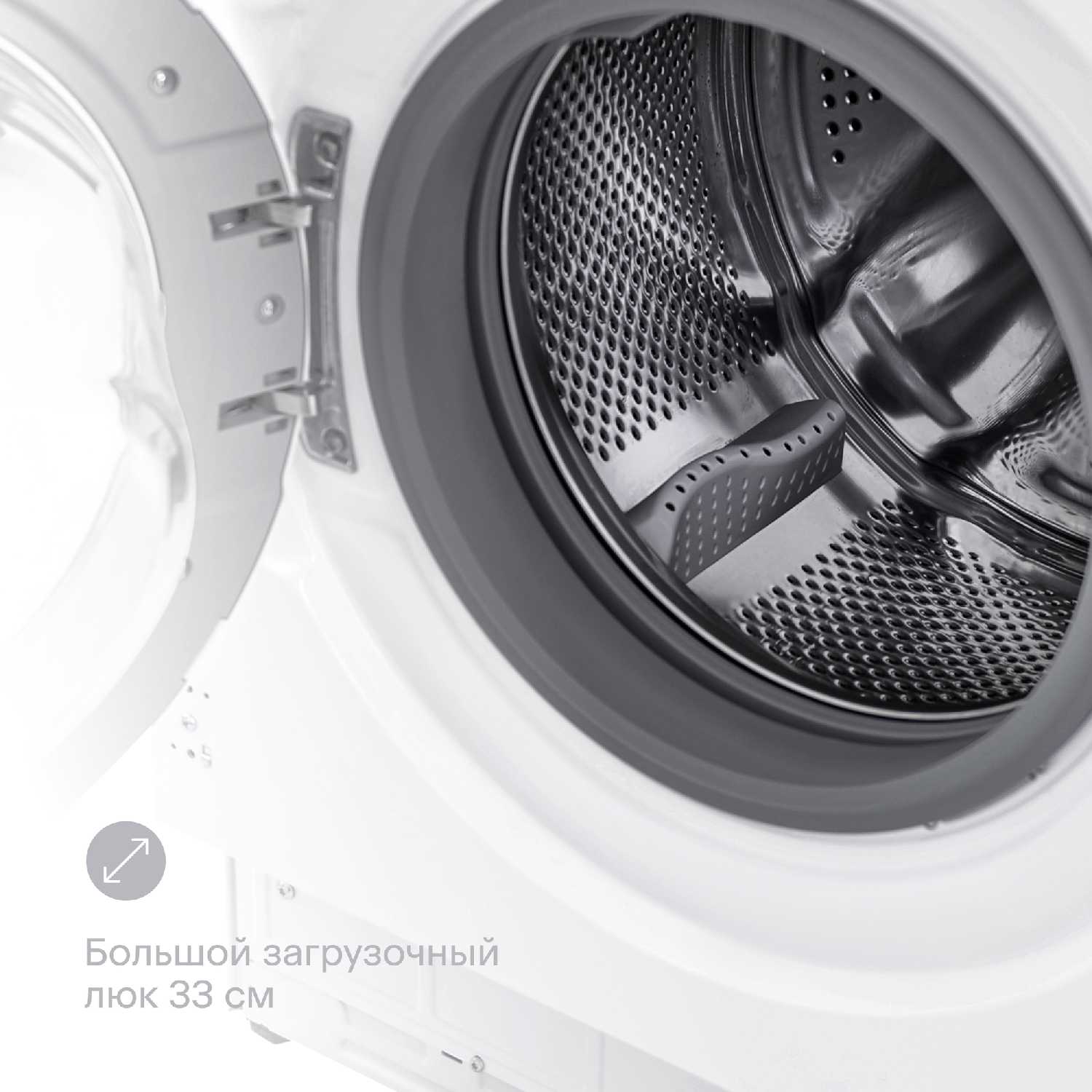 - Равномерное распределение белья в барабане способствует качественной стирке и сушке, предотвращая сминание.