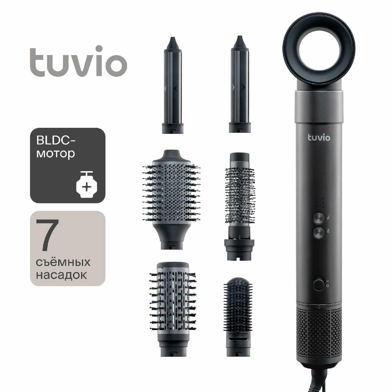 Стайлер от Tuvio – это лучшее, что произошло со мной в этом году. Он действительно мощный, очень удобный и имеет аж целых 7 насадок для укладок!