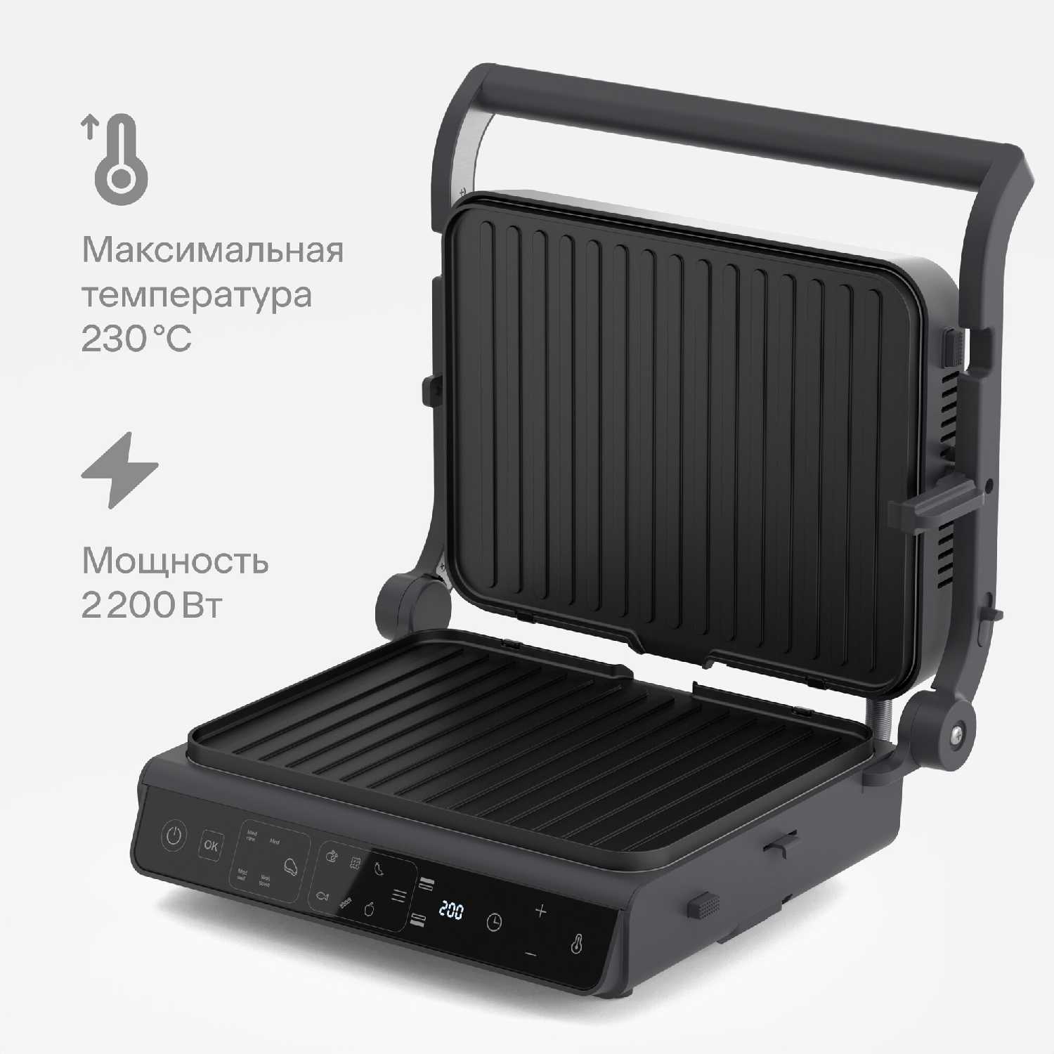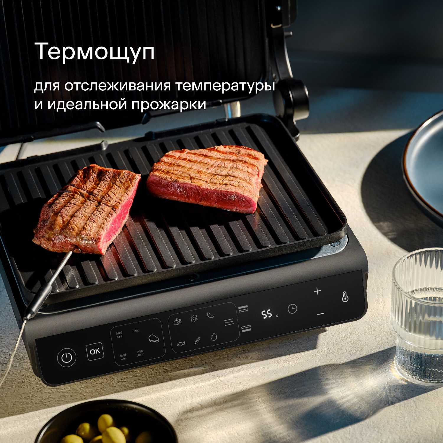 Термощуп это Очень крутая штука! Теперь мясо всегда получается идеальной прожарки, как в ресторане. Не нужно гадать, готово ли оно внутри. Панели антипригарные, так что ничего не прилипает, и отмывается без проблем в посудомоечной машине. - - Странно реализованы кнопки управления.