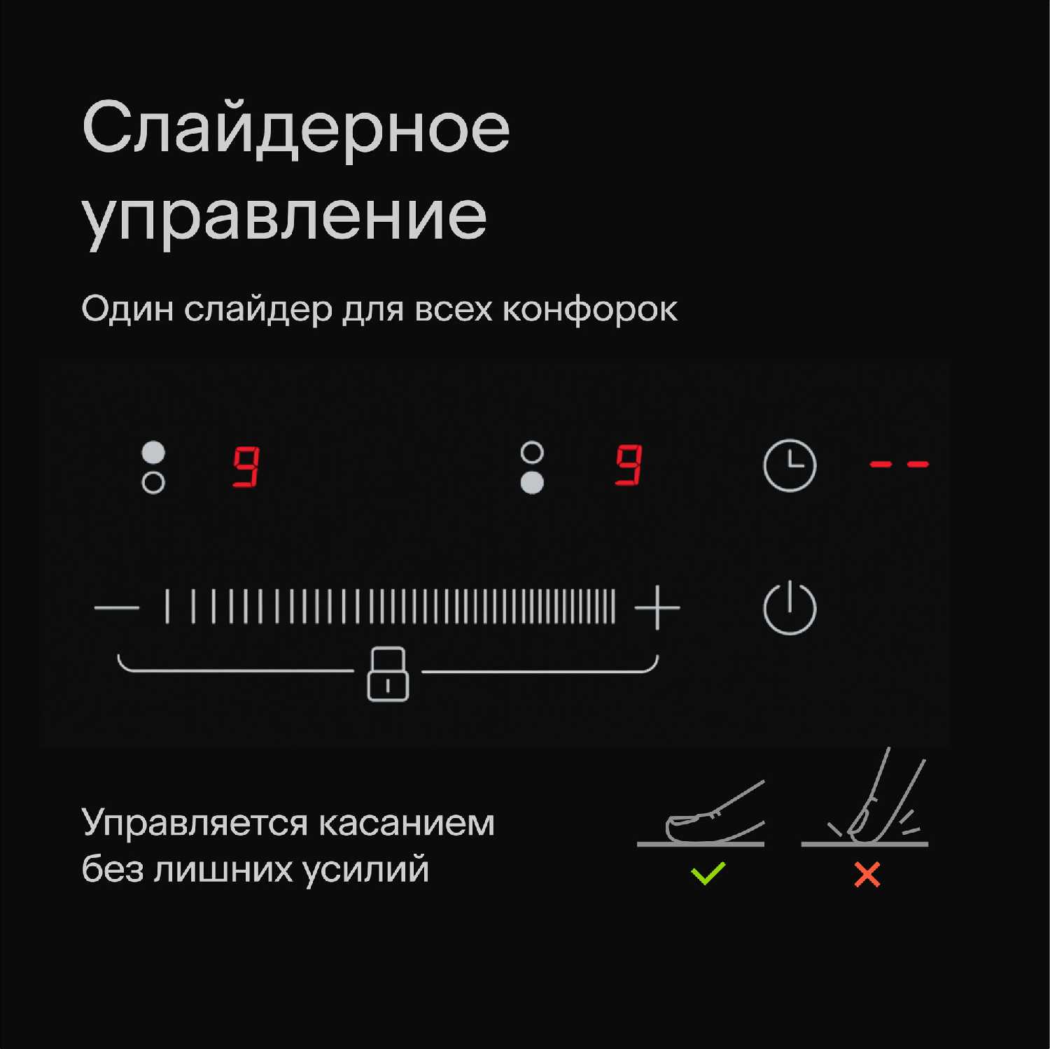 Сенсорное управление оценивается как интуитивно понятное, но некоторые пользователи столкнулись с неудобствами в работе таймера. Он стартует только от 30 минут, а для установки коротких интервалов (5–10 минут) требуется многократное нажатие. После срабатывания таймера панель не отключает конфорку автоматически — 30 секунд звучит резкий сигнал, что раздражает при частом использовании. Блокировка от случайных нажатий работает без нареканий. -