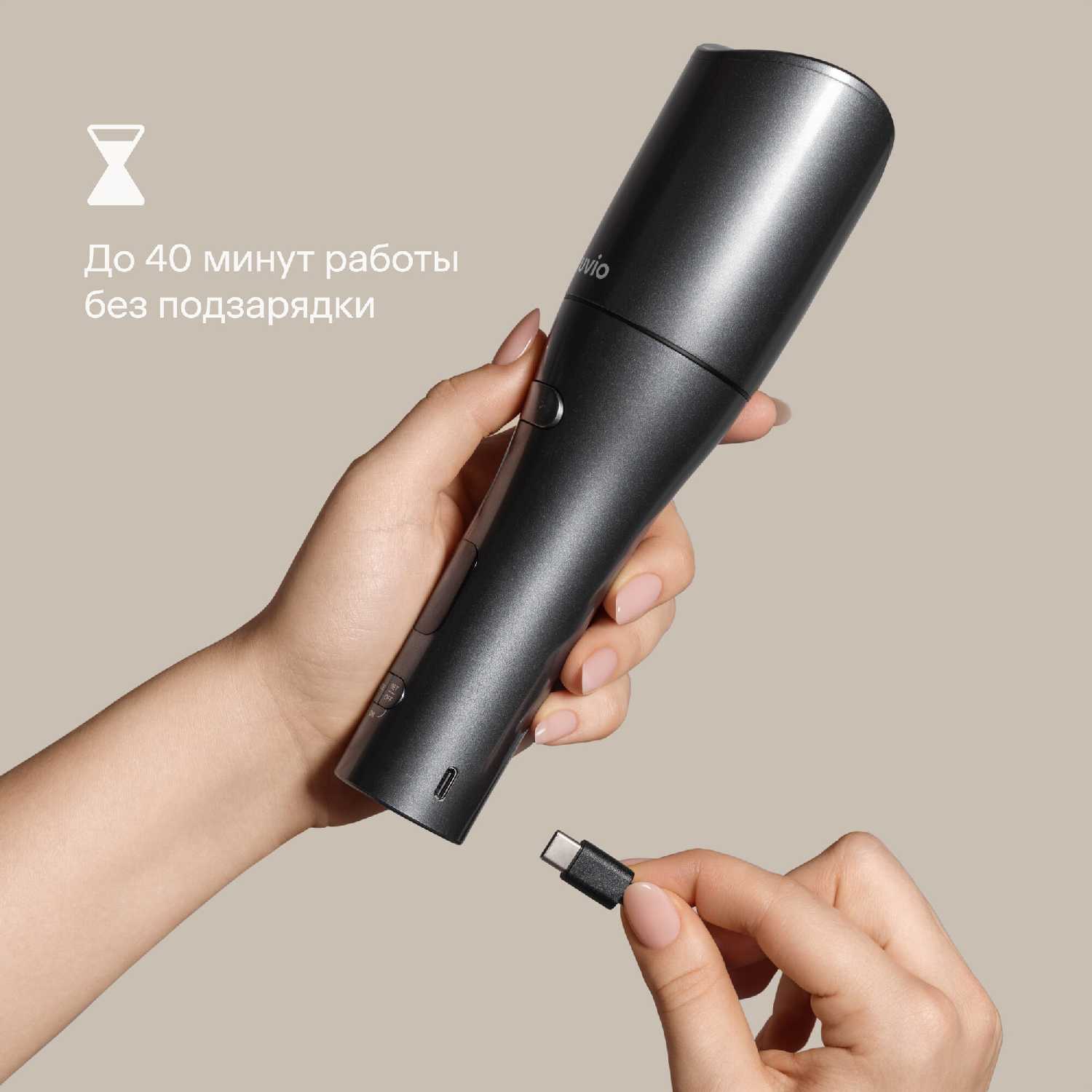 - Заряда хватает на 15–20 минут работы (1–1.5 полные укладки для волос средней длины).