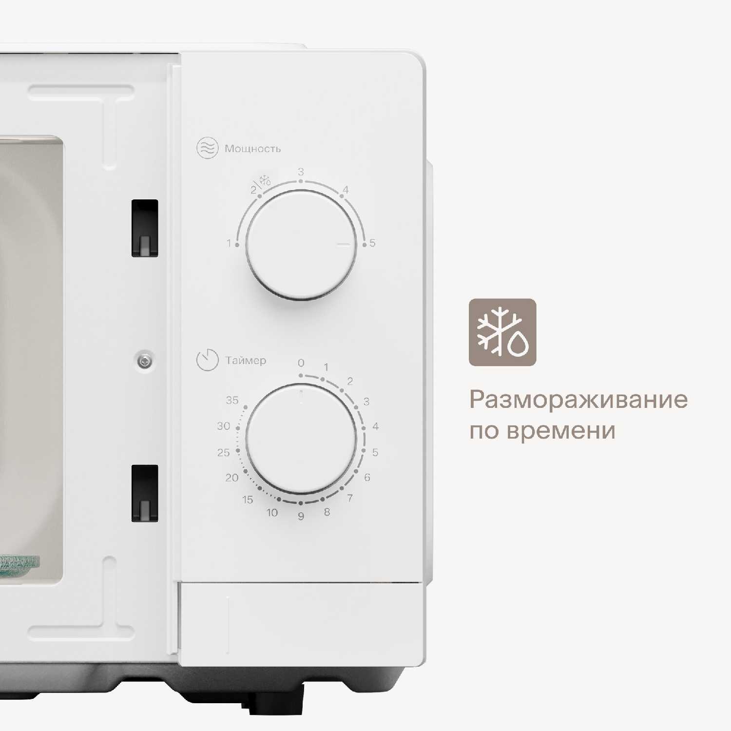 Функция разморозки реализована только через минимальный режим подогрева, что не всегда удобно для пользователей. Отзывы подчёркивают отсутствие отдельной кнопки или программы для этой задачи, хотя базовое размораживание в целом выполняется. Некоторые отмечают, что для полноценной работы приходится экспериментально подбирать время. -