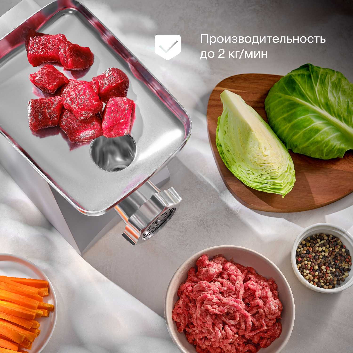 - Технический параметр: мощность двигателя обеспечивает производительность до 1.5 кг мяса за 5–7 минут.