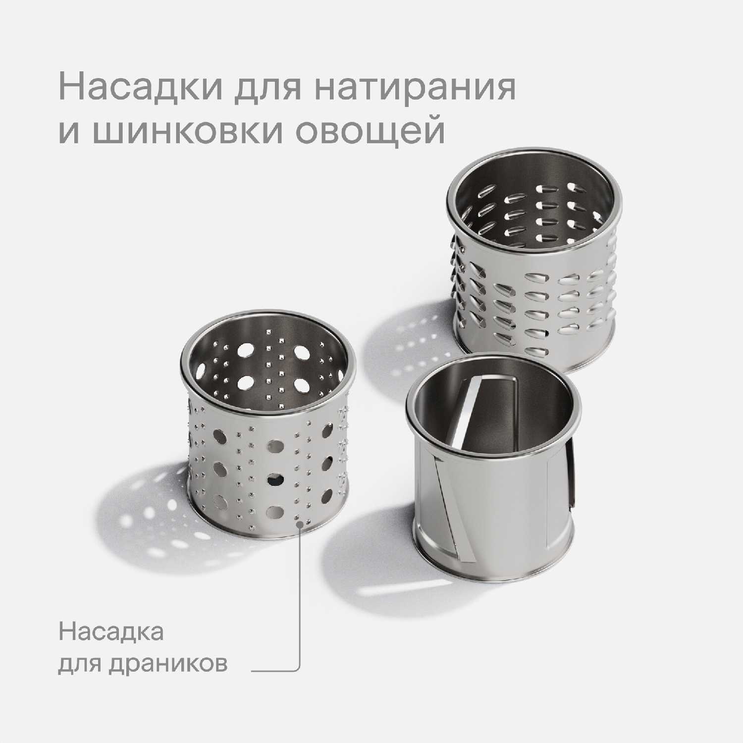 Плюсы — лёгкость сборки, компактность и наличие присосок для фиксации на столе. Однако отсутствие ручки для переноски, хлипкий отсек для хранения насадок и необходимость частой разборки для чистки усложняют использование. Детали нельзя мыть в посудомоечной машине, а ручная мойка приводит к коррозии металла. Для пожилых людей устройство удобно из-за малого веса, но острые края деталей и необходимость прилагать усилия при сборке нивелируют этот плюс.