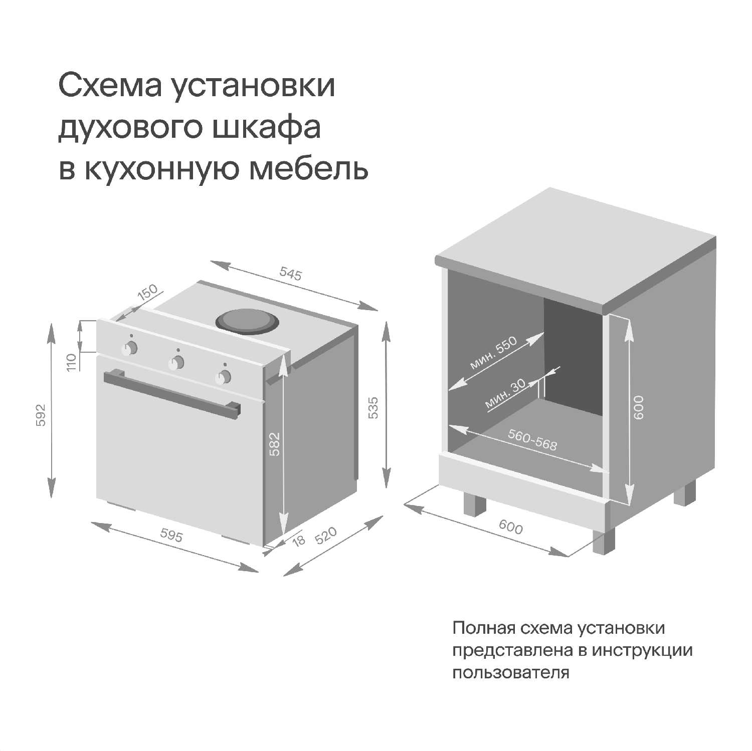 - Габаритные размеры (60 см) соответствуют большинству стандартных ниш, но требуют предварительной проверки перед установкой.