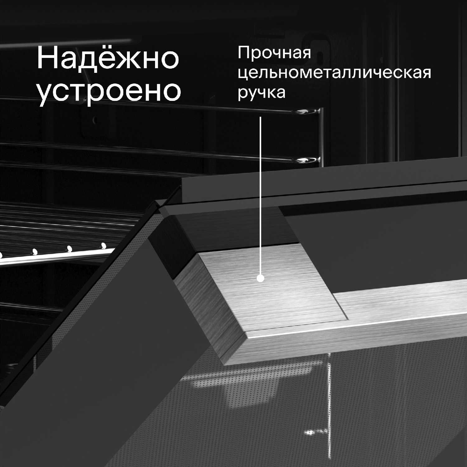 - Конструкция ручек предотвращает накопление загрязнений и брызг жира, сохраняя эстетичный внешний вид при ежедневном использовании.