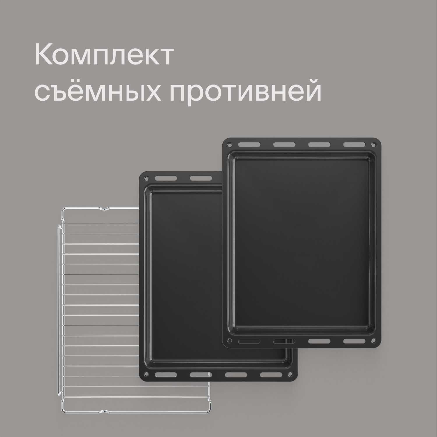 Стандартно включены 2 эмалированных противня, решетка для барбекю и сетка для овощей. Отсутствие решетки для сушки – индивидуальный производственный брак. Противни из толстого металла не деформируются при 250°C. -