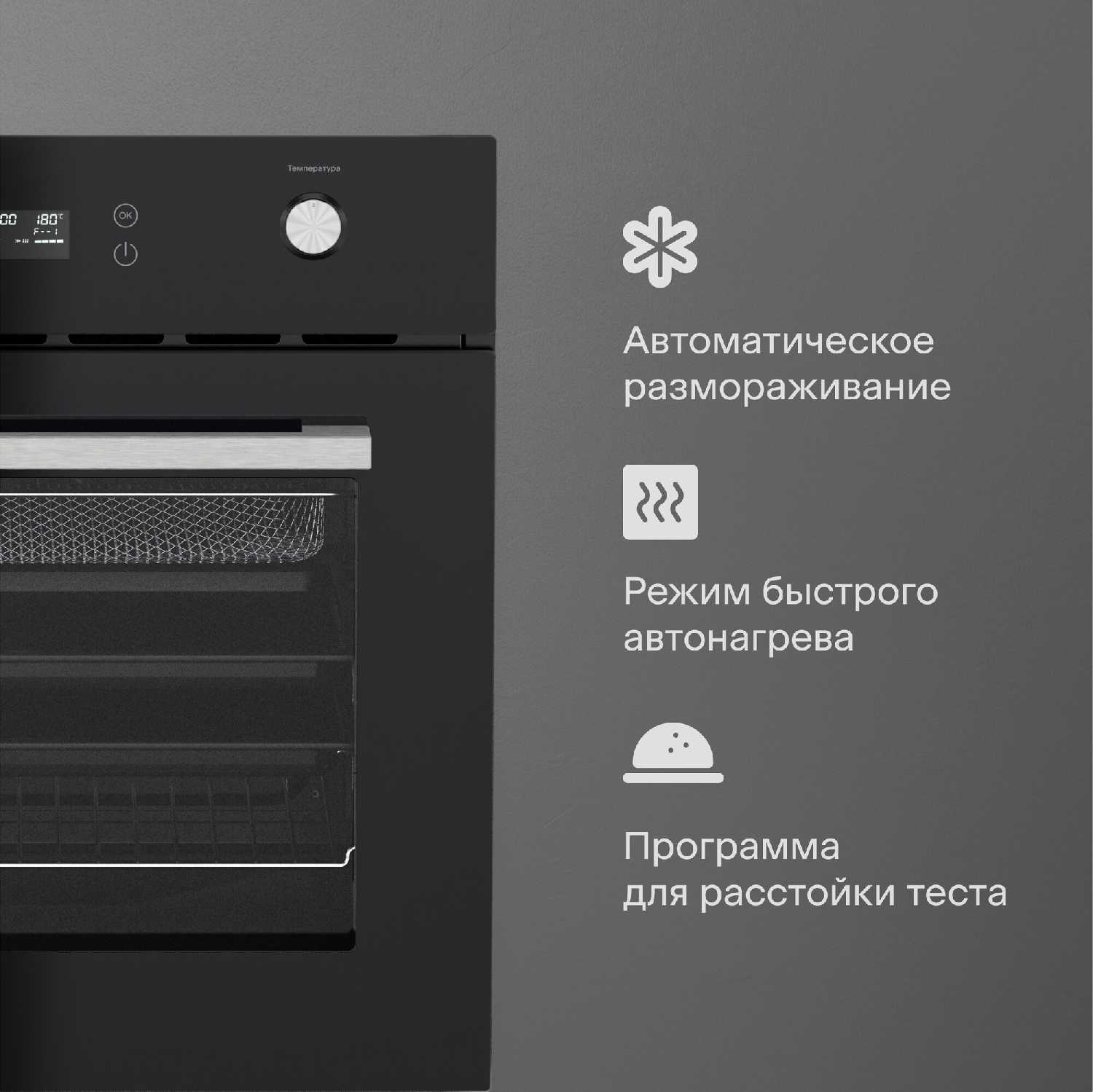 Пользователи отмечают высокую скорость нагрева: духовой шкаф оперативно набирает необходимую температуру, что особенно ценно при готовке выпечки или мяса. Например, хлеб выпекается за 20 минут вместо 60 в газовых аналогах. Быстрый нагрев реализован благодаря усиленным нагревательным элементам, что подтверждается в тестах с запеканием картофеля и утки. -