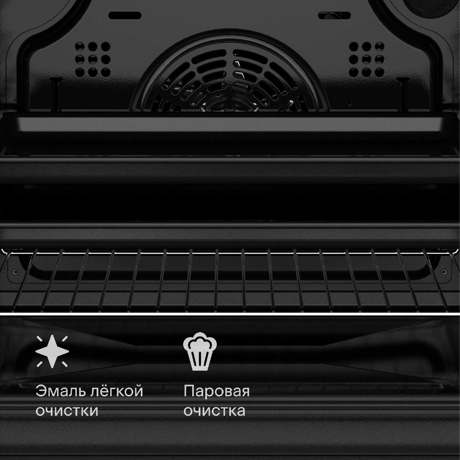 - Дверца с тройным стеклом: внешняя панель нагревается не более чем до 45°C, что снижает риск ожогов.