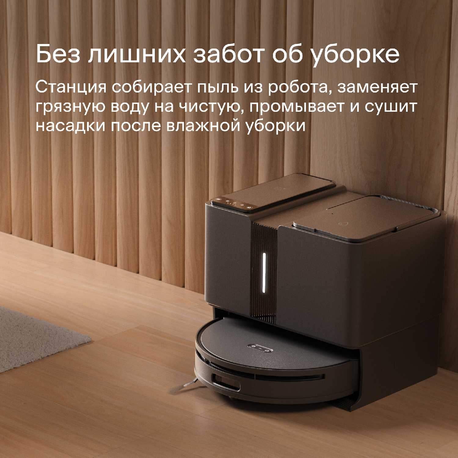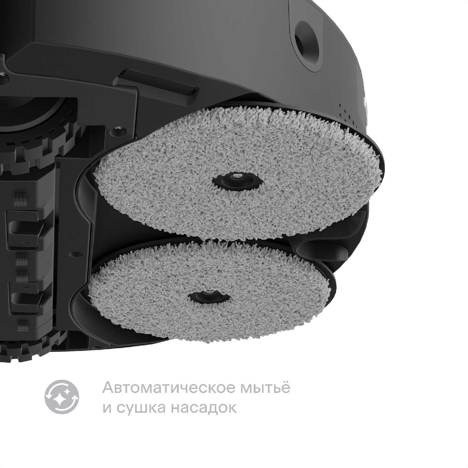 - Режим автоопорожнения контейнера в док-станции сокращает вмешательство пользователя — бак освобождается после каждого заезда на базу.