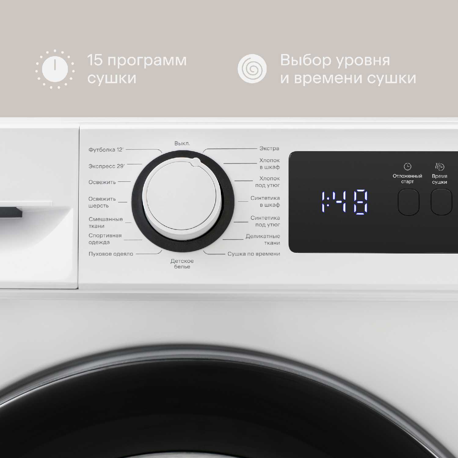 - Короткие циклы сушки на мощных программах позволяют быстро получать сухие вещи, подходящие для немедленного использования без дополнительного ожидания.