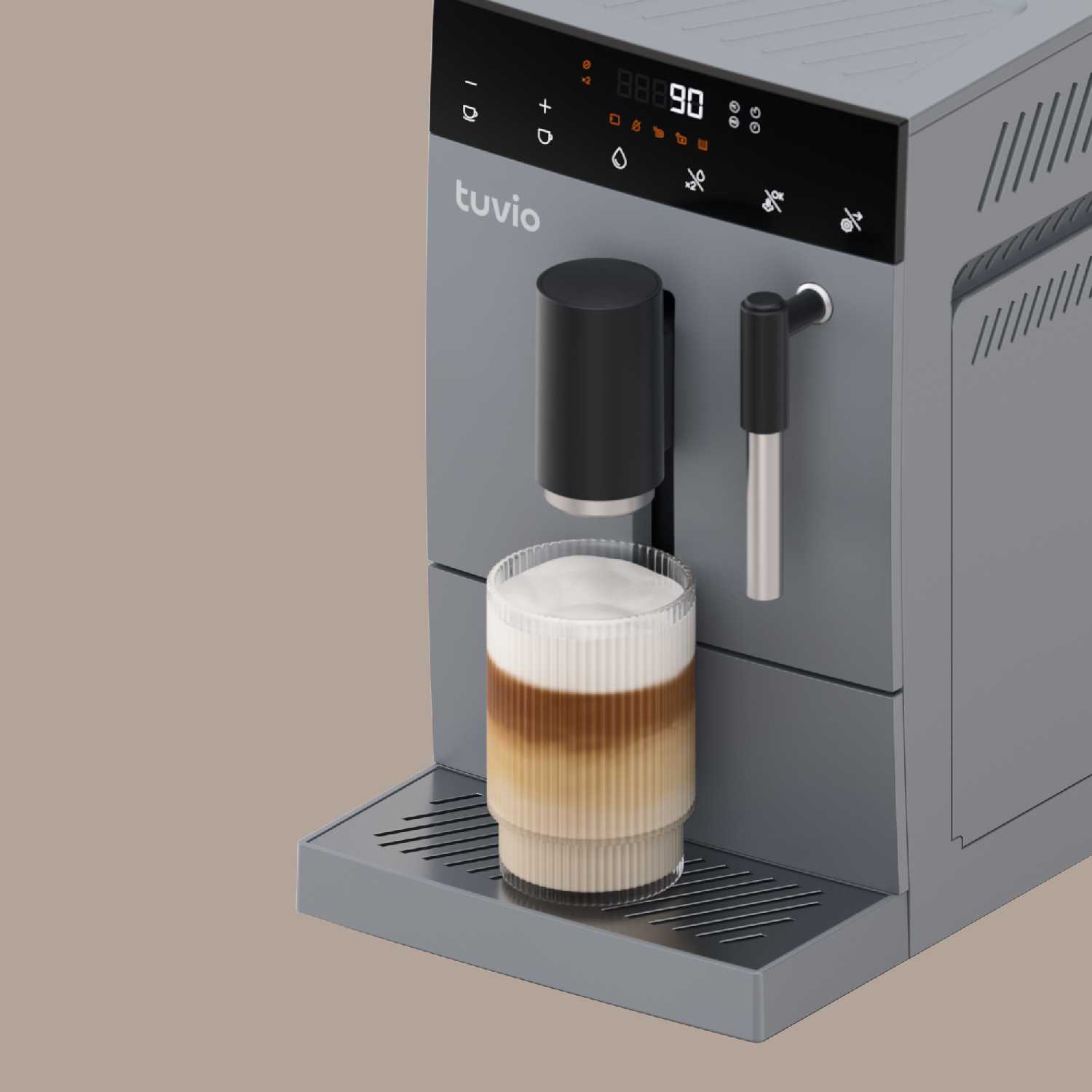 Первая наша кофемашина и первая техника бренда Tuvio. Надеюсь не подведёт. Нам очень нравится, недостатков никаких нет, главное во время ухаживать и чистить. Капучинатор хорошо взбивает молоко.
