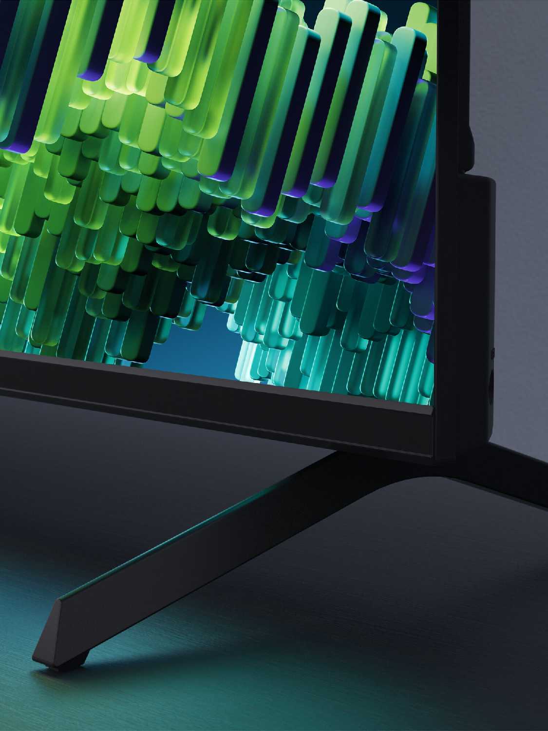 - Удобный монтаж — телевизор надёжно встаёт на стену с VESA-креплением и создаёт эффект «картины на стене».