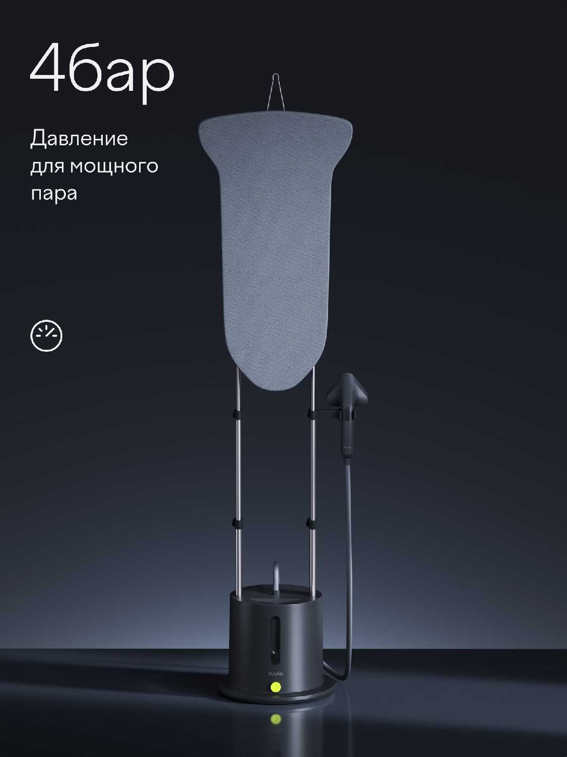 - Разглаживает стойкие складки за минуты, футболки — за 30 секунд, джинсы — за минуту, давление до 4 бар обеспечивает сильный паровой удар.