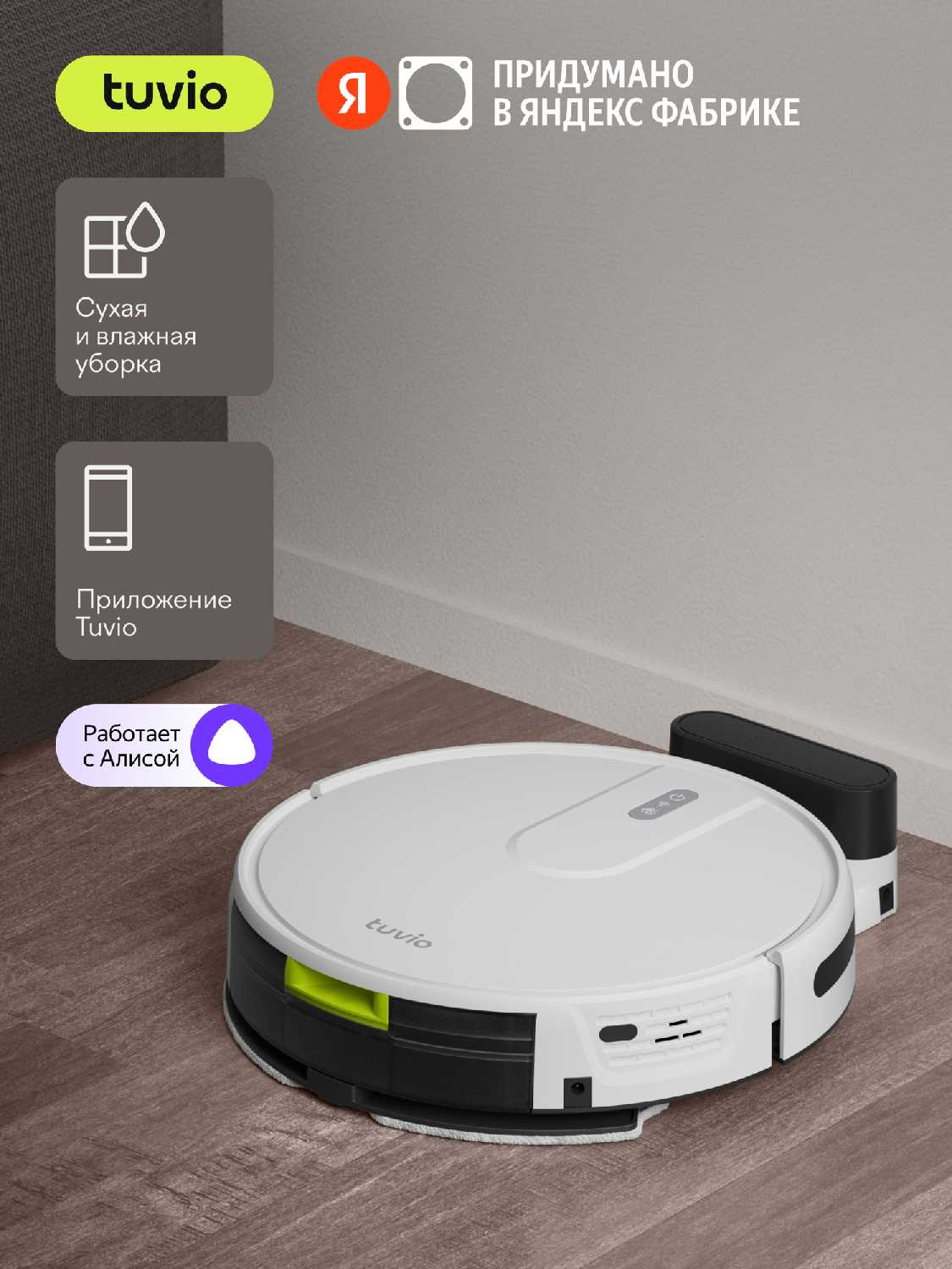 - + Плюсы: Робот-пылесос Tuvio TR07MGBW с Wi-Fi и функцией влажной уборки хорошо справляется с задачами. Он хорошо убирает сухую уборку, собирая пыль и мусор, а также моет полы и оставляет их без разводов. Отдельно отмечу простоту обслуживания: контейнер для мусора и резервуар с водой удобно вытаскивать и промывать. Управлять устройством можно через удобное мобильное приложение или через пульт ДУ. Особенно радует интеграция с Яндекс Умный дом — после подключения появляется возможность голосового управления через Алису. Например, можно сказать: Алиса, запусти уборку, и робот начнет работу. Кроме того, можно настраивать сценарии автоматизации через приложение, что делает использование гибким. В целом это нормальный вариант для тех, кому нужна автоматизация уборки без лишних сложностей. 😊