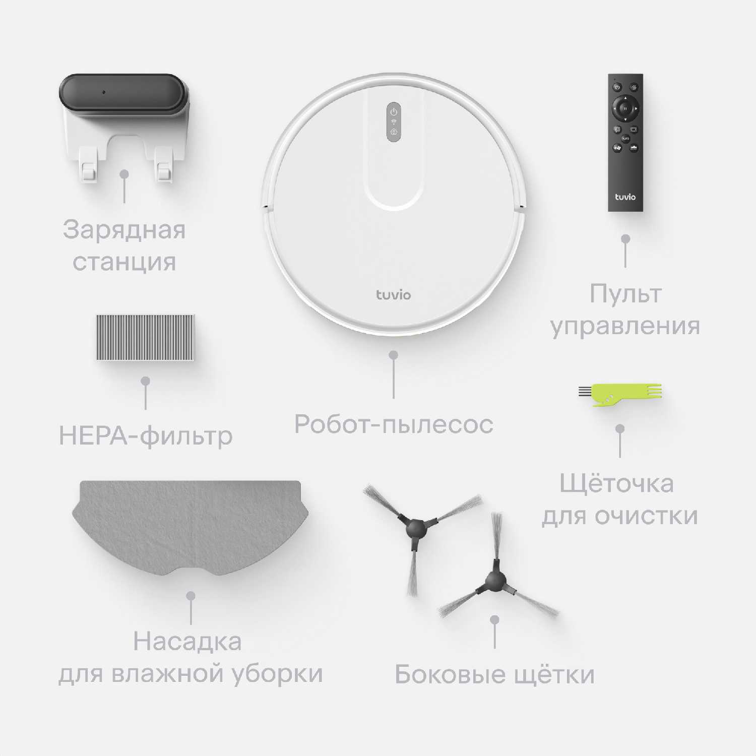 Tuvio TR07MGBW выполнен в простом, но аккуратном белом корпусе из пластика. Его ключевое конструктивное преимущество — высота всего в 8 сантиметров. Это действительно позволяет ему заезжать под большинство кроватей, диванов и низкой мебели. Однако тут же кроется и первое противоречие. Некоторые пользователи отмечают, что глянцевая поверхность быстро покрывается мелкими царапинами и заметными отпечатками пальцев. С точки зрения дизайна — выбор спорный.