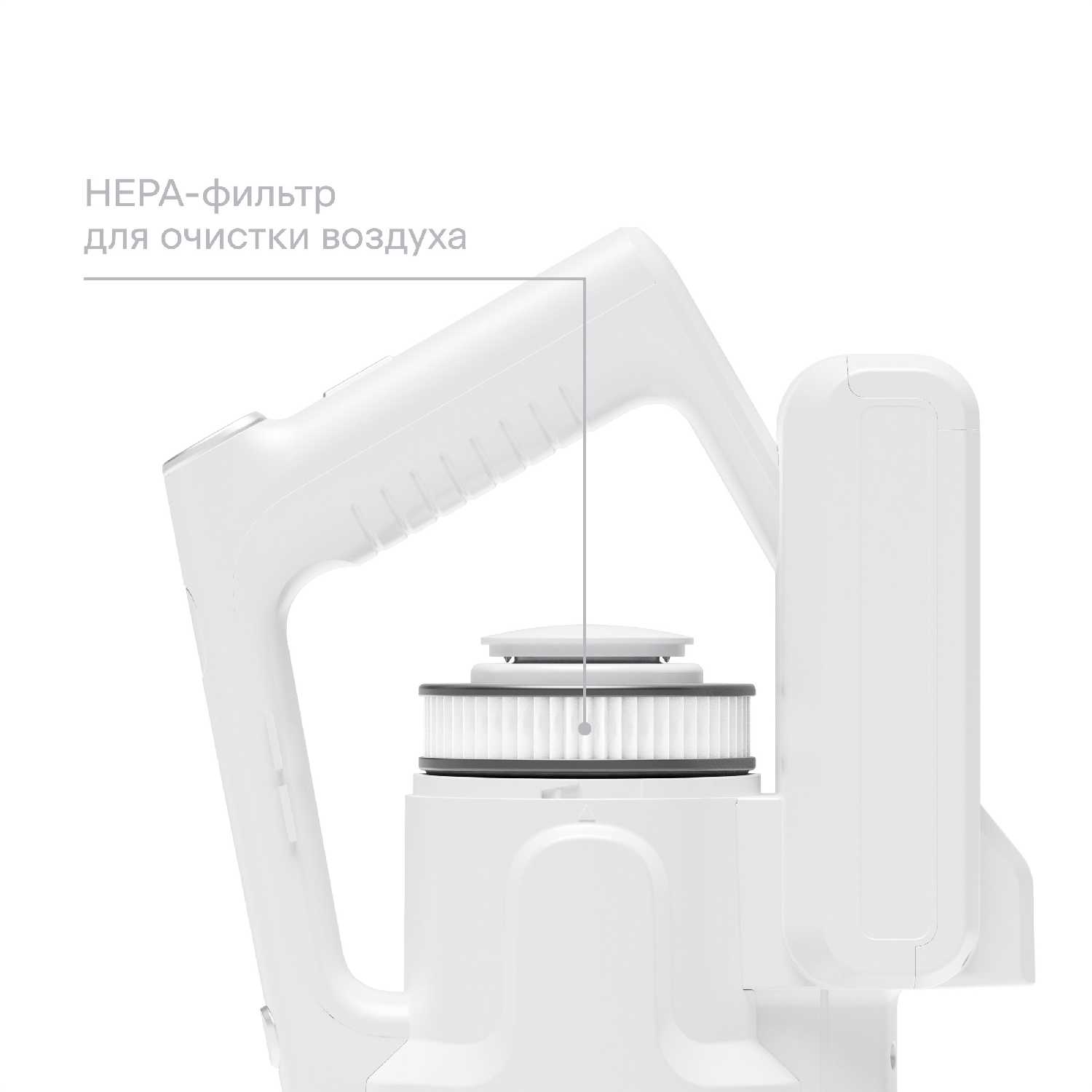 - + Хорошая сила всасывания, комфортный вес и размер, стильный дизайн, подставка для хранения, дополнительные удобные насадки (щелевая и маленькая с щетинками). В целом простой и понятный базовый пылесос. Подсветка на щётке очень помогает в уборке. Без инструкции понятно, как собирать, чистить и пользоваться, всё интуитивно понятно. Удобно раскрывается контейнер для пыли — можно не пачкая рук опустошить пылесборник. К покупке рекомендую.