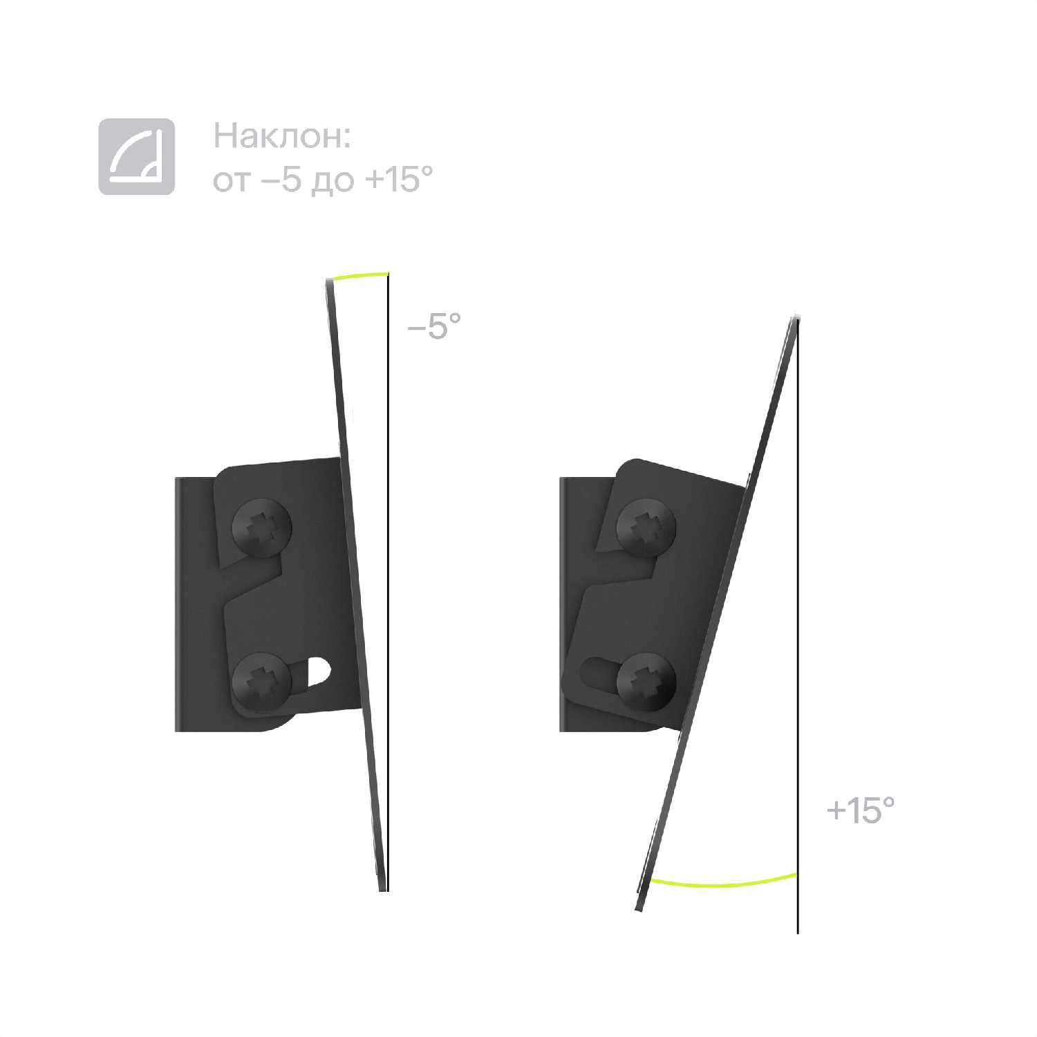 Уже месяц кронштейн висит на стене, и меня всё устраивает. Из недостатков могу отметить только два момента: не очень удобно крепить телевизор и нет возможности поворачивать его влево или вправо — только наклонять вверх-вниз.