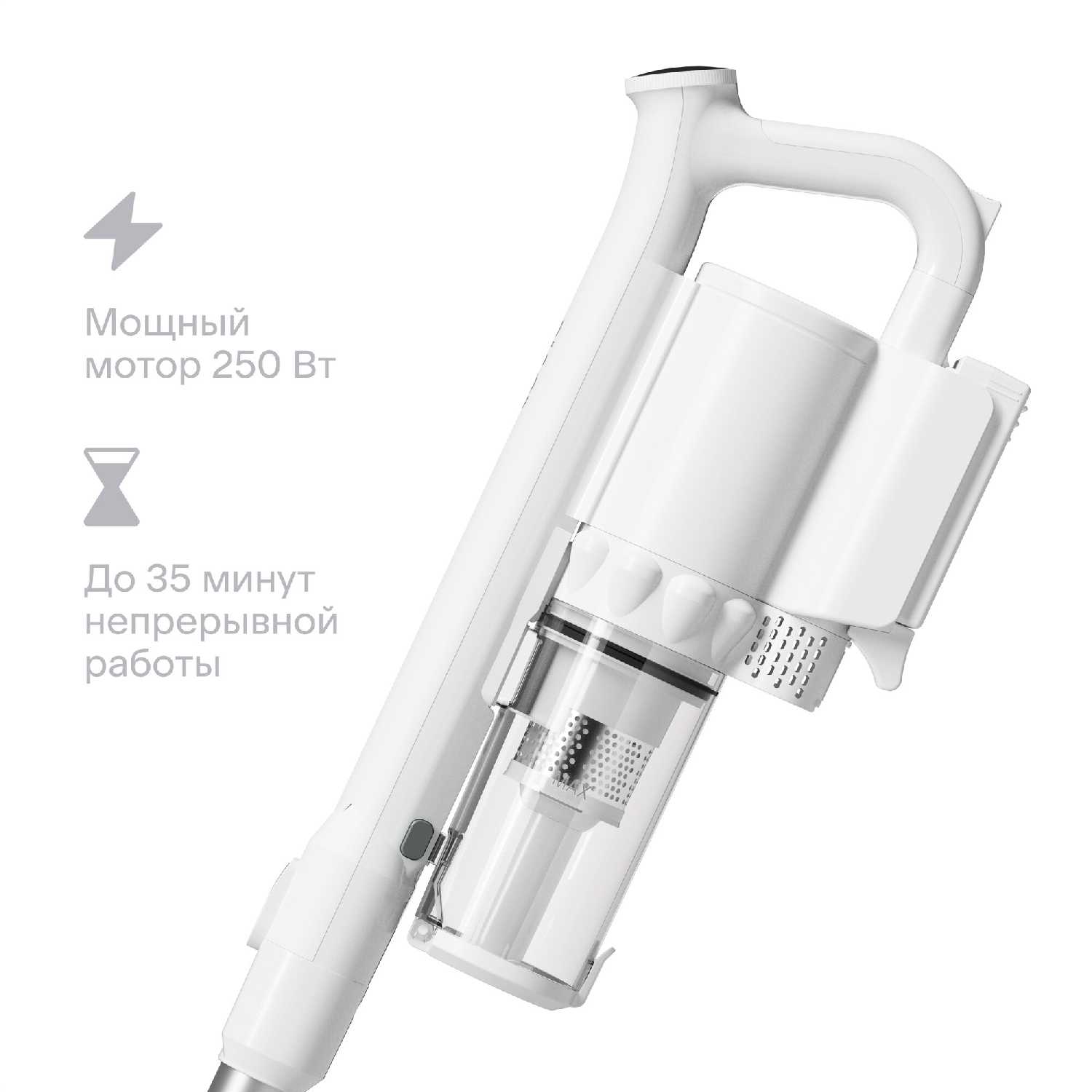 - Заряда хватает на 20-30 минут в турбо-режиме для экстренной уборки зон до 18 м².