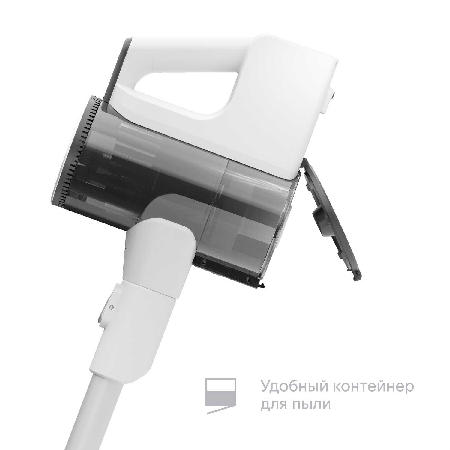Контейнер для мусора легко снимается и открывается одной кнопкой. Фильтры моющиеся: их можно промывать под водой после каждой уборки. Однако компактный размер контейнера требует частой очистки, особенно при сборе крупного мусора, который может застревать на входе. -