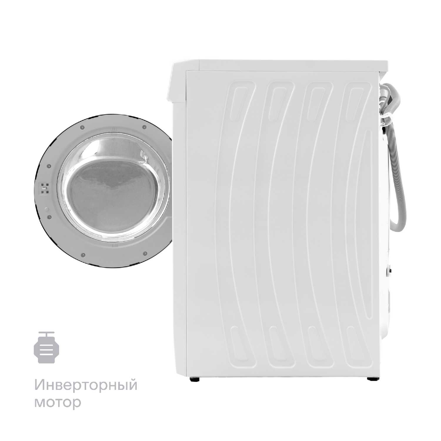 - Инверторный двигатель обеспечивает тихую работу: 45-50 дБ при стирке и 70 дБ при отжиме на 1200 об/мин, что позволяет использовать ночью.