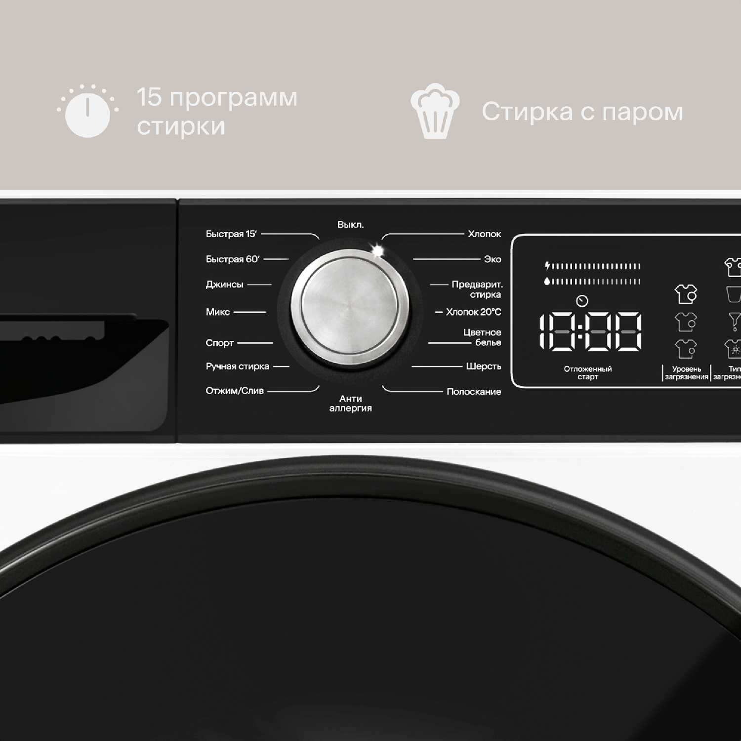 - - Нет подсветки барабана. Чтобы не скакала и была бесшумной необходимо выставить по уровню. Немного опаздывает выбор программы за колёсиком.