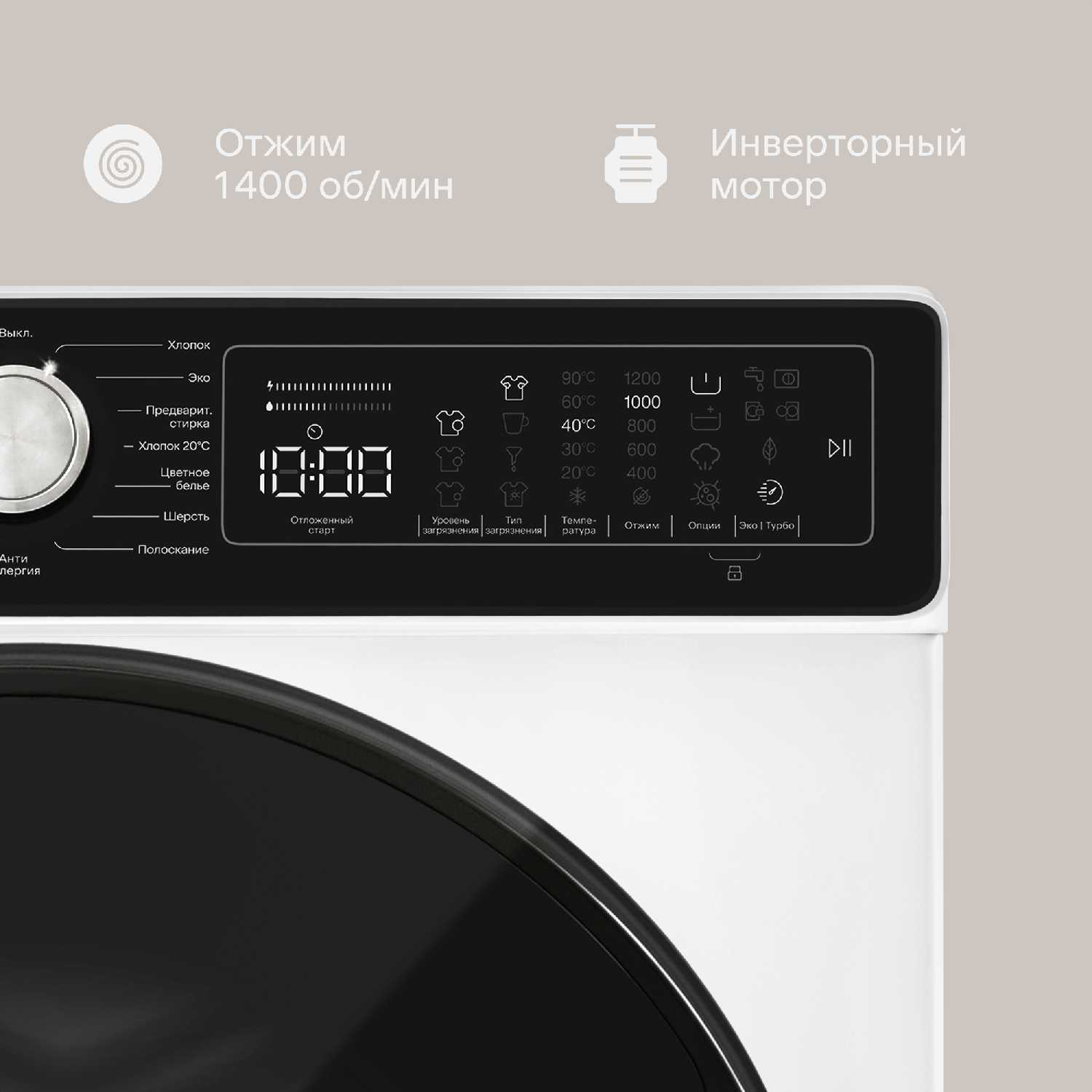 Инвертор, отжим на 1400об/мин, очень тихая работа