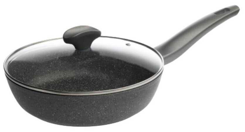 - + Замечательная сковорода, пища не пригорает, имеется крышка
